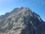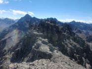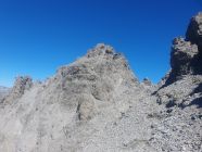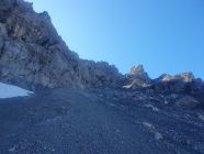 Die obere Traverse zum Grat in der Schuttrinne hat viel abschüssiges Geröll drinnen und darf nicht unterschätzt werden (T6+, I). Ich würde da nur ein Auf- und sicher KEIN Abstieg empfehlen!