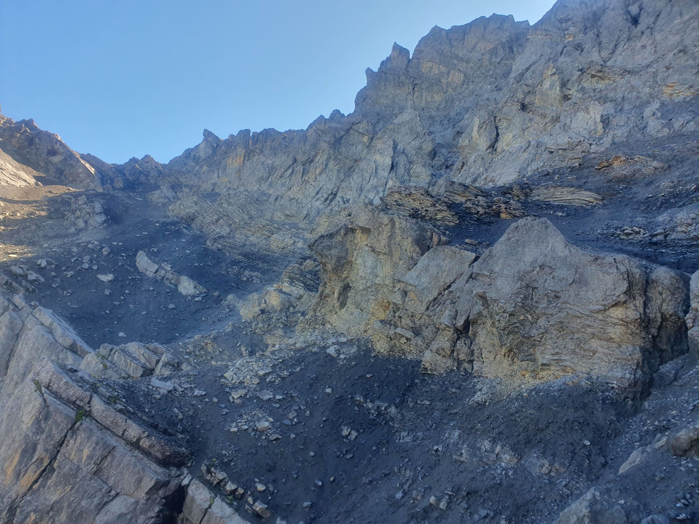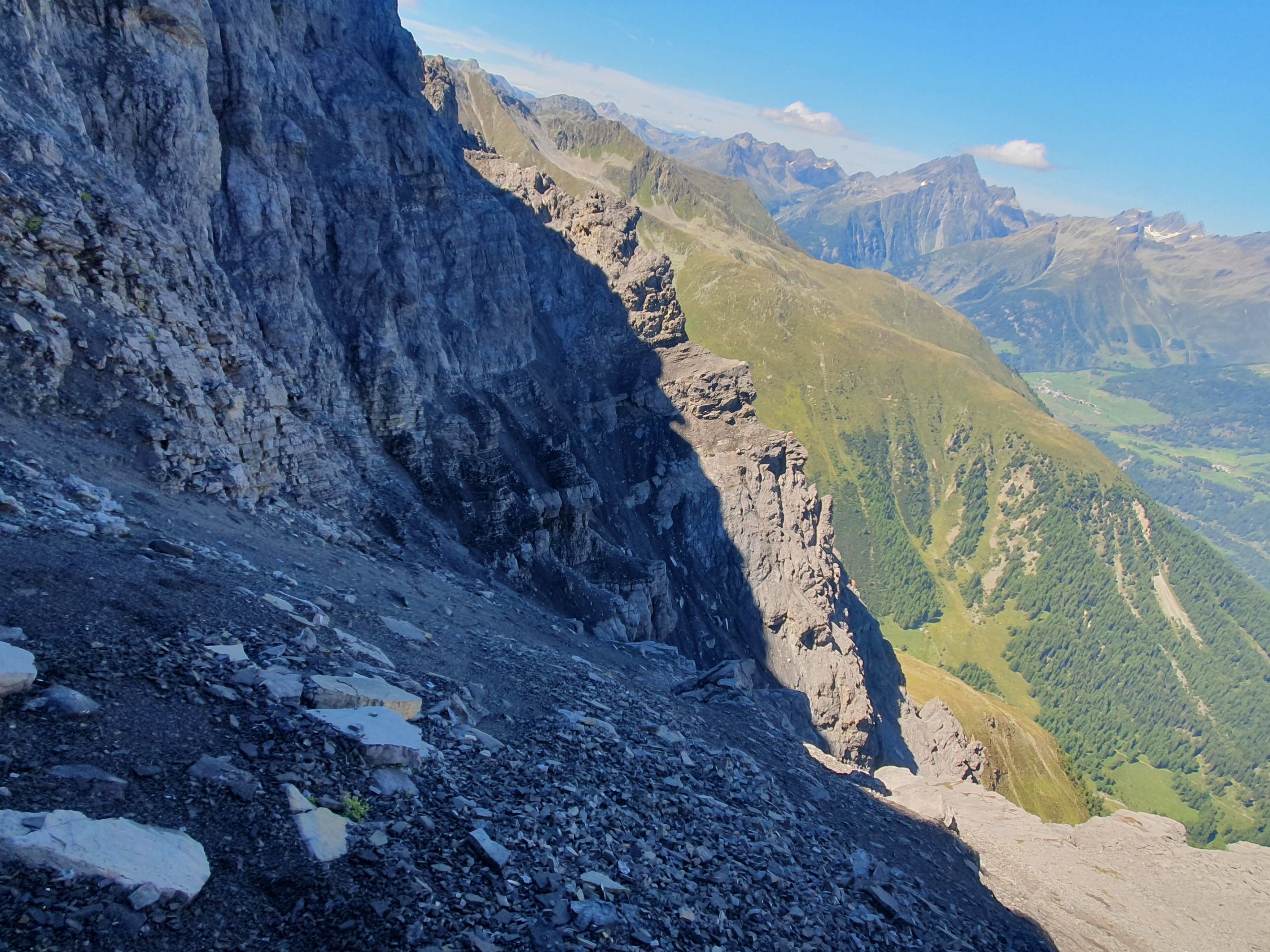 Vom Sattel zwischen Piz Plattuns West und Ostgrat bis zum Piz Plattuns Ostgrat stehen keine Informationen im SAC Führer, ausser, dass der Ostgipfel leichter sei als der Westgipfel. Nun, beim Abstieg vom Piz Plattas Ostgipfel zum Sattel hatte ich schon zuoberst grosse Probleme da auf dem Grat hinab zu kommen. Die Wand ist senkrecht, ausgesetzt und fast jeder Stein kam aus der Wand raus. Ich war da am zweifeln, habe es aber mit viel Zeit trotzdem riskiert. Ist aus meiner Sicht nicht empfehlenswert...