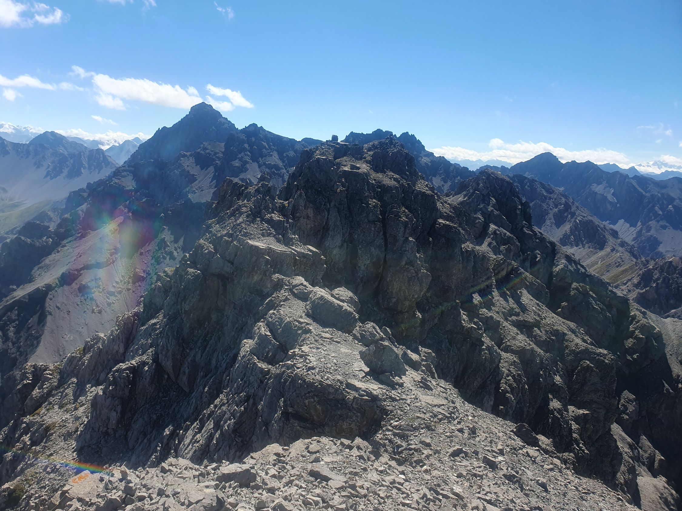 Beim Piz Plattuns Ostgipfel ein durchnässtes und verschimmeltes Gipfelbuch entdeckt. Schade, denn es wäre interessant gewesen zu schauen, wie oft dieser Gipfel überhaupt besucht wird. Auf dem Piz Nair leider kein Gipfelbuch gesehen.