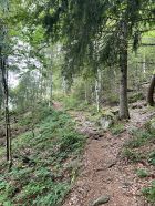 Ich machte nicht die angegebene Tour, sondern den Bernauer Hochtalsteig über die im Gipfelbuch leider nicht mehr existierenden Spiesshörner mit Start in Bernau Kaiserhaus. Einer meiner Schwarzwaldklassiker. Immer wieder schön und lohnend. Wege trocken und gut begehbar, Wetter bewölkt aber bis 30 Minuten vor Schluss trocken. Dann kam die mitgetragene Regenjacke noch zu Ehren.