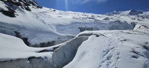 Riedgletscher im unteren Teil Spaltenreich, aber die Schneebrücken hielten gut.