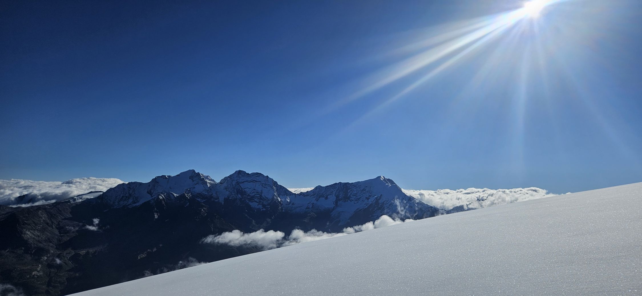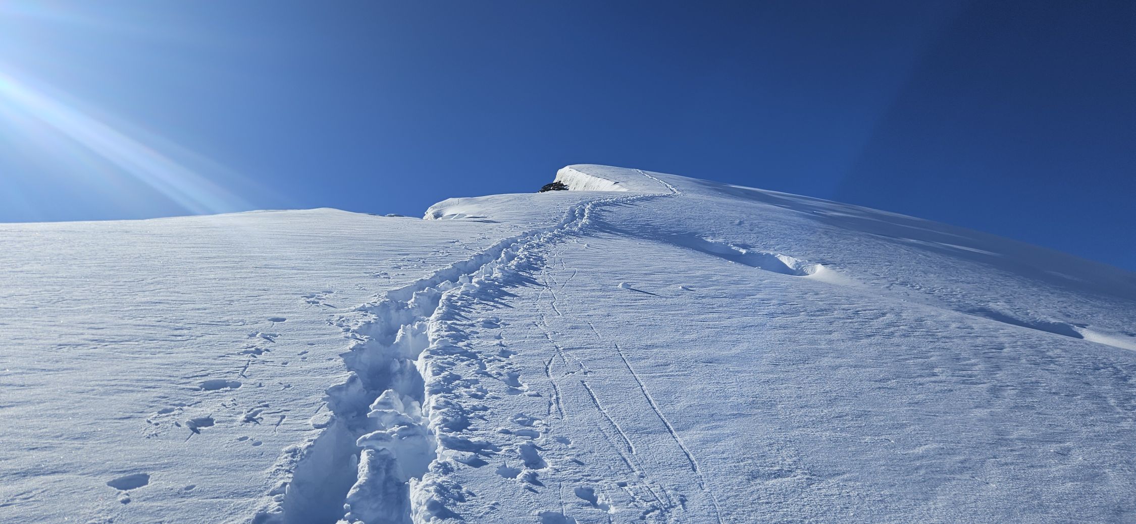Obererer Riedgletscher bis zum Ulrichshorn gut eingeschneit, kaum Spalten sichtbar. Etwa 30cm Pulver vor dem Ulrichshorn machte das Spuren anstrengend. Bergab dafür umso leichter.