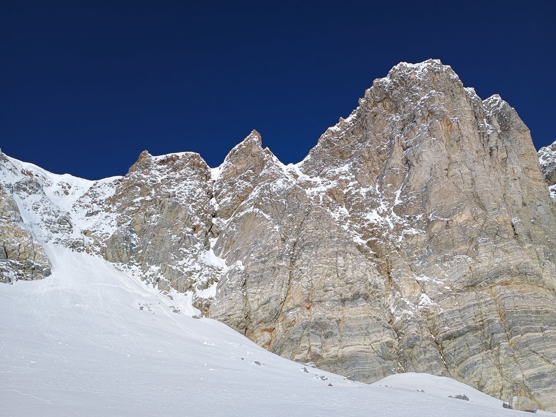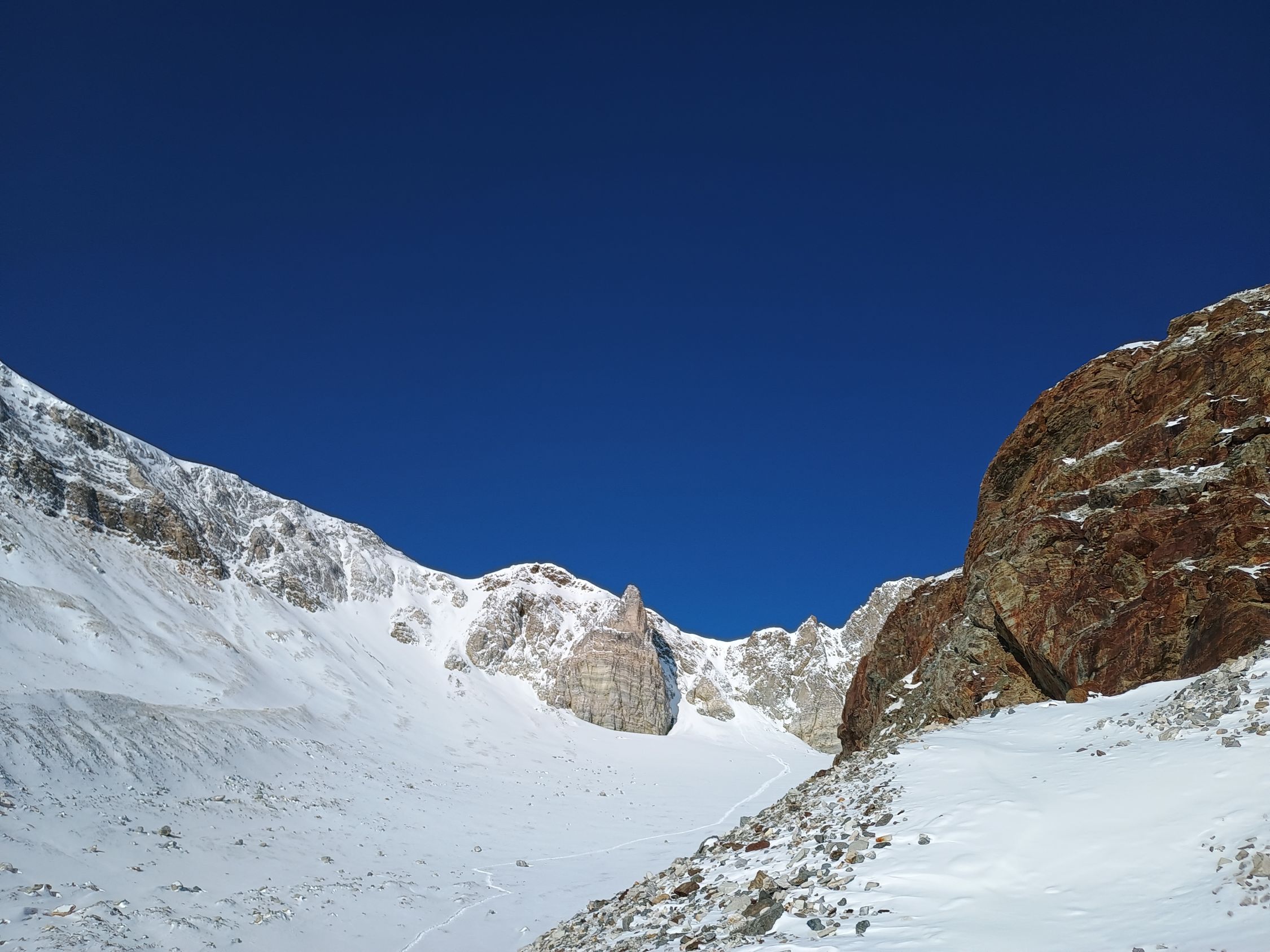 Doch einiges an Schnee nach der Topalihütte. Unter dem Aufstieg zum Schöllijoch umgekehrt. Einige habens gewagt und hat wohl geklappt...
