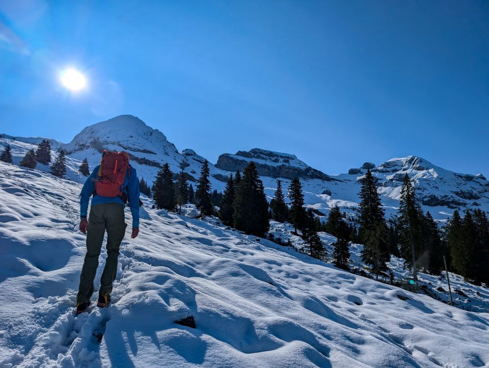Für die nächsten ~2 Tage lohnt es sich wahrscheinlich, den schönen Pulverschnee zwischen Druesberglücke (p.2108) und Steinhüttli (1500 m) zu skifahren.