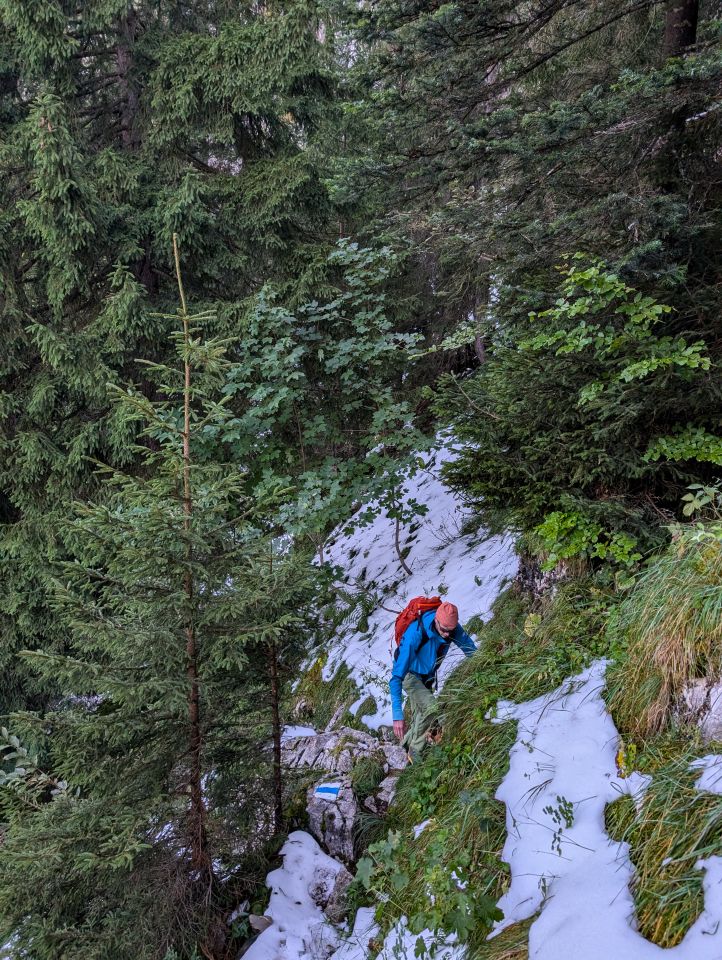 Aber an der Westflanke des Gipfels zwischen 2150-2200 m gab es eine ziemlich grosse Gleitschneelawine , und weiter oben (auf der Nordseite) sahen die Bedingungen unsicher aus, und mit viel Exposition. Wir drehten um auf 2200 m.
