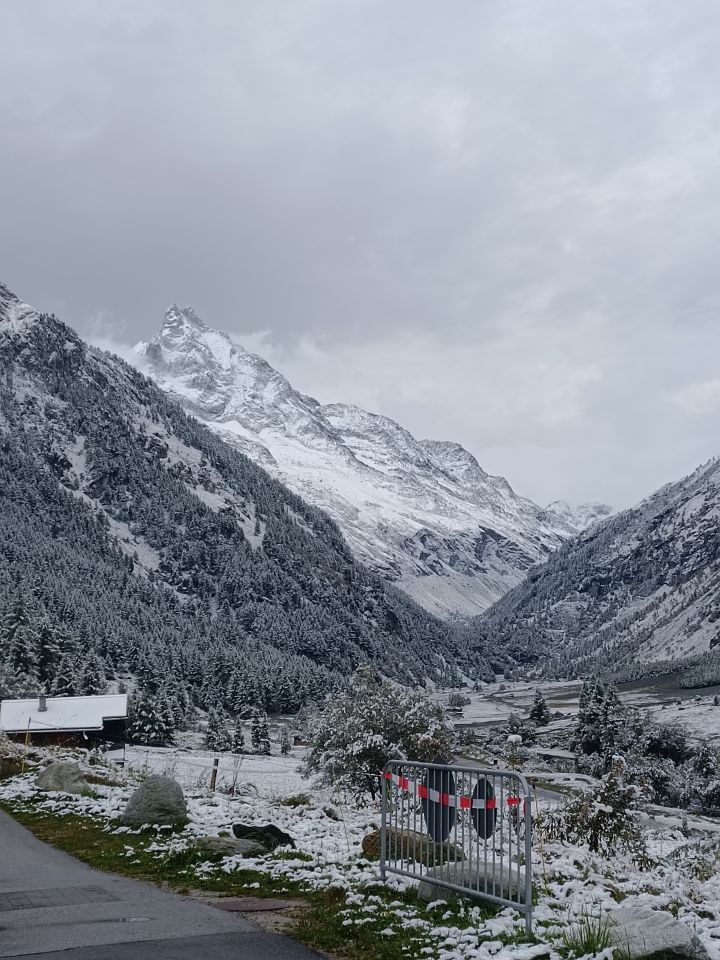 Schon beim Start in Zinal winterliche Verhältnisse, Zustieg trotzdem OK, mit zunehmender Höhe immer mehr Schnee. An der Tracuit-Hütte ca. 20cm Neuschnee.