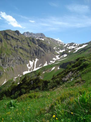 Wer sich den Gipfelkopf/Grat nicht zutraut, hat auch eine schöne Aussicht von der Einsattelung 2710m aus.
