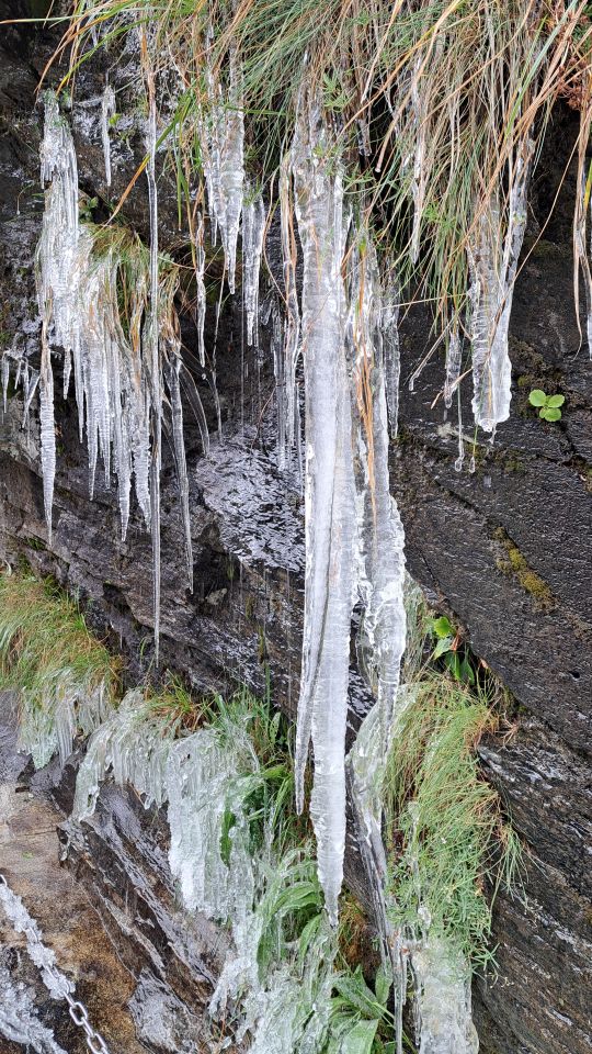 Gletscher war vor dem Schneefall blank und ist jetzt sehr gut begehbar. Wir haben im Aufstieg erst beim Gletscher Steigeisen angezogen, diese dann aber im Abstieg bis nach der Steilstufe unterhalb der Läntalücke verwendet.