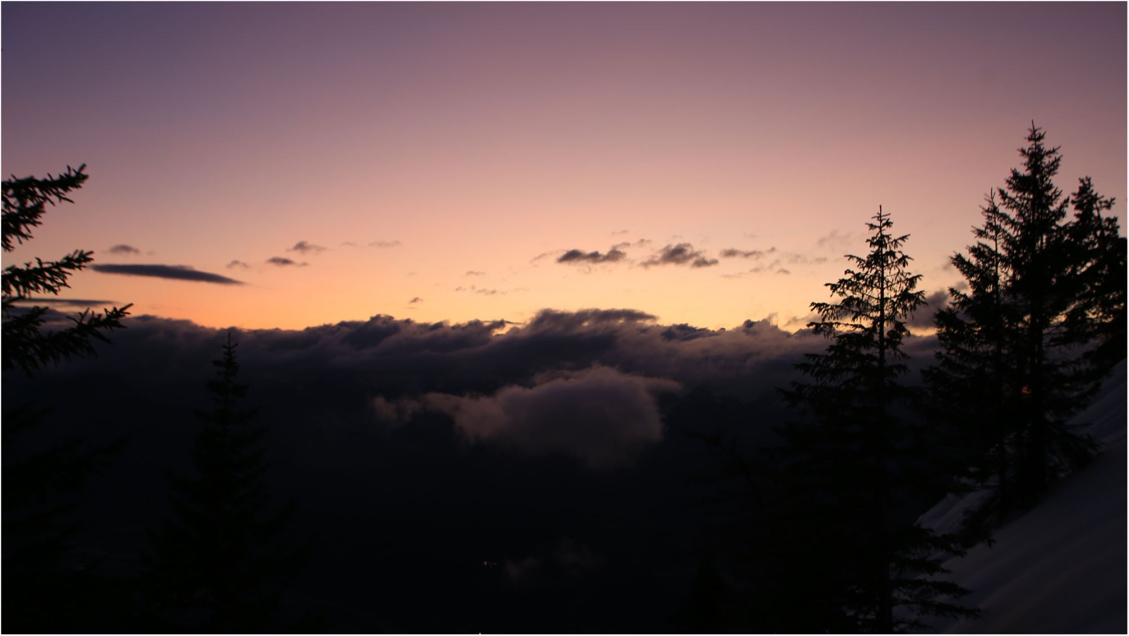 Kurzer Blick in die Runde: Schnee ab ca 1200m danach rasch zunehmend bis über einen Meter ohne jeglichen Untergrund.