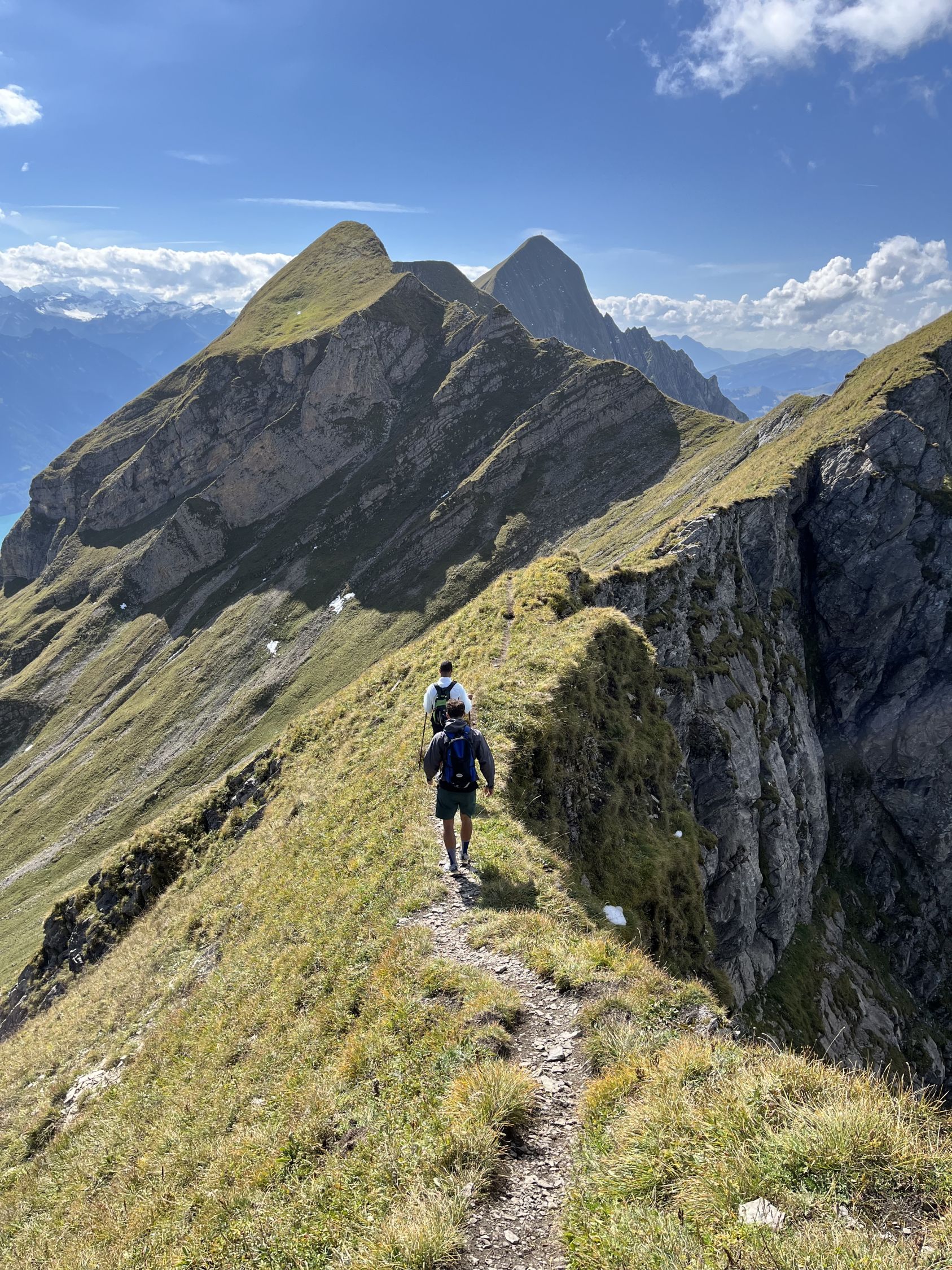 Später Start in Brienz um 9:30. Trotz den ausgiebigen Schneefällen vor einer Woche ist praktisch der ganze Brienzer Grat trocken und problemlos begehbar. Nur im steilen Lättgässli liegen noch Schneereste und einiges an Schlamm. Dank den Fixseilen ist dort aber der Abstieg (bzw. Aufstieg) problemlos machbar.