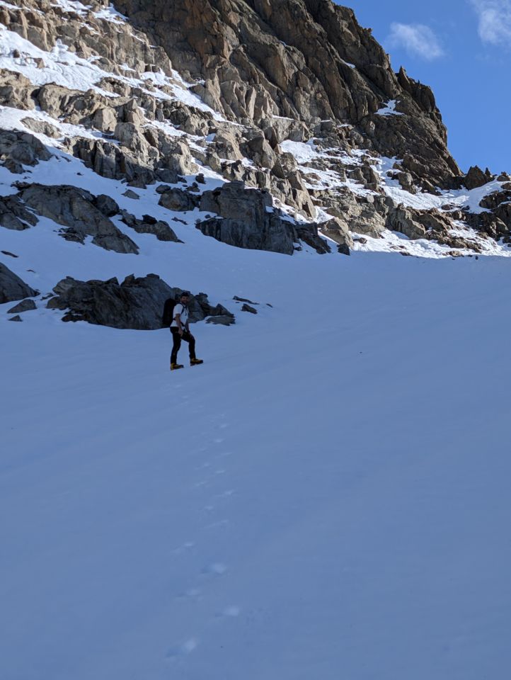 Chemin d accès à partir de ~2600m complètement enneigé à hauteur de genou. Prévoir de partir tôt lorsque la neige est encore dure.