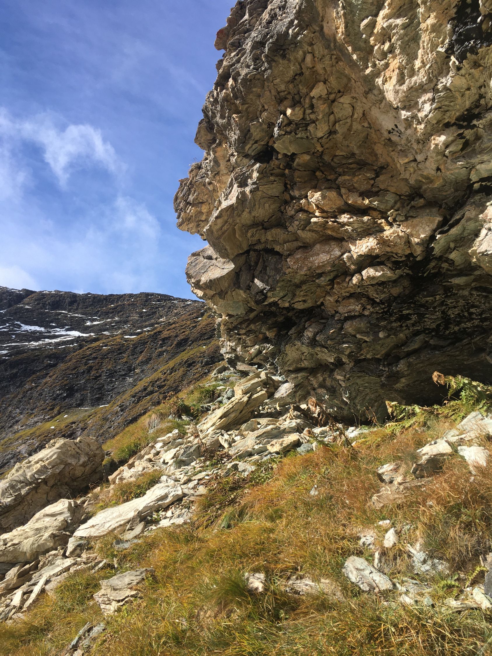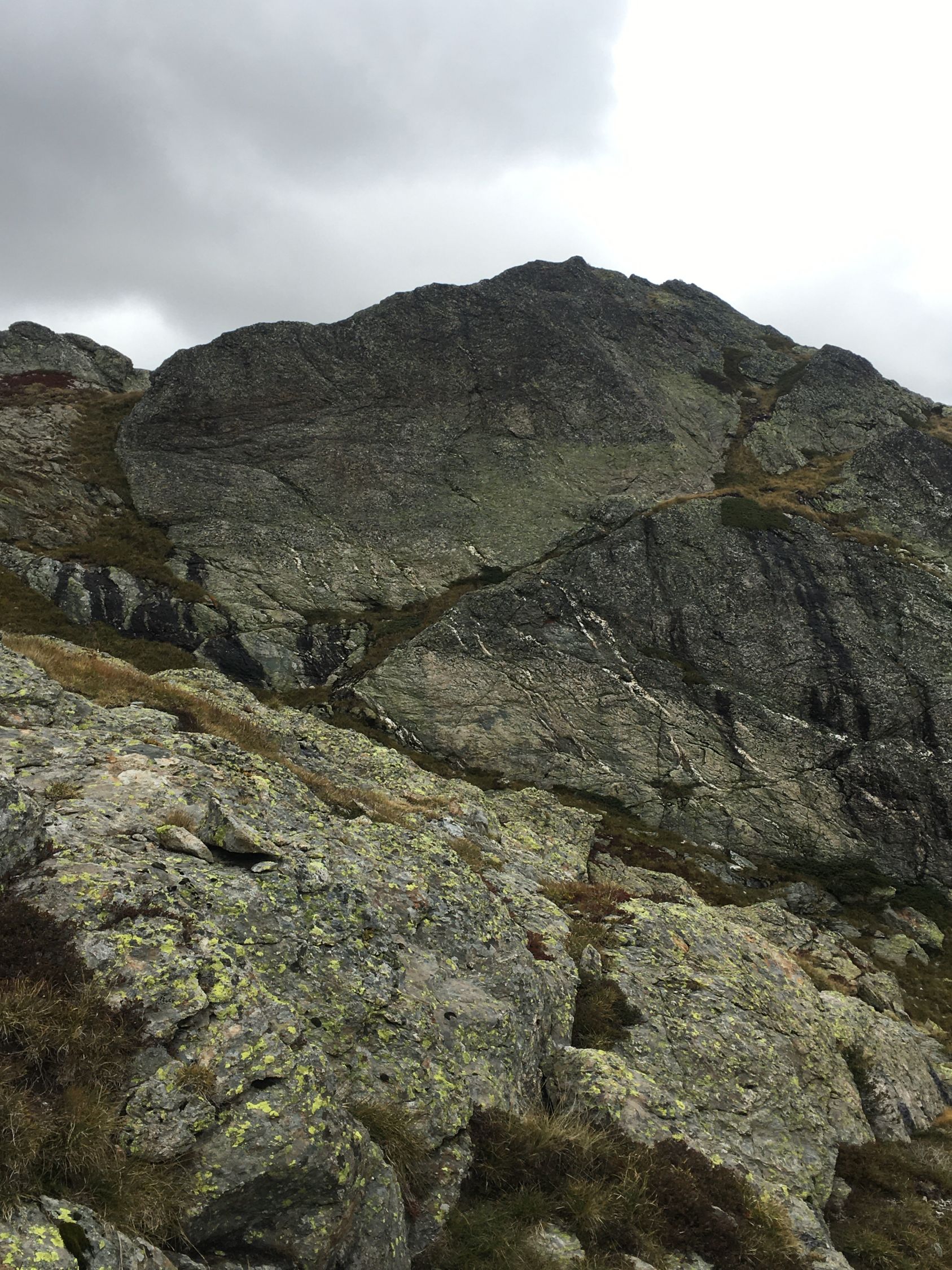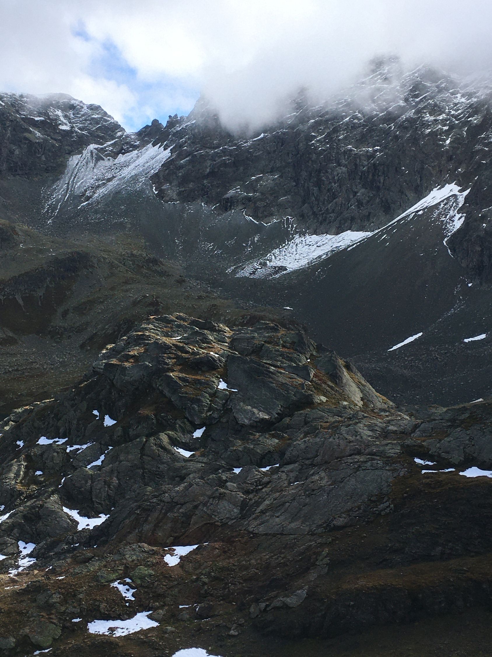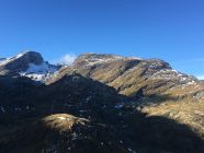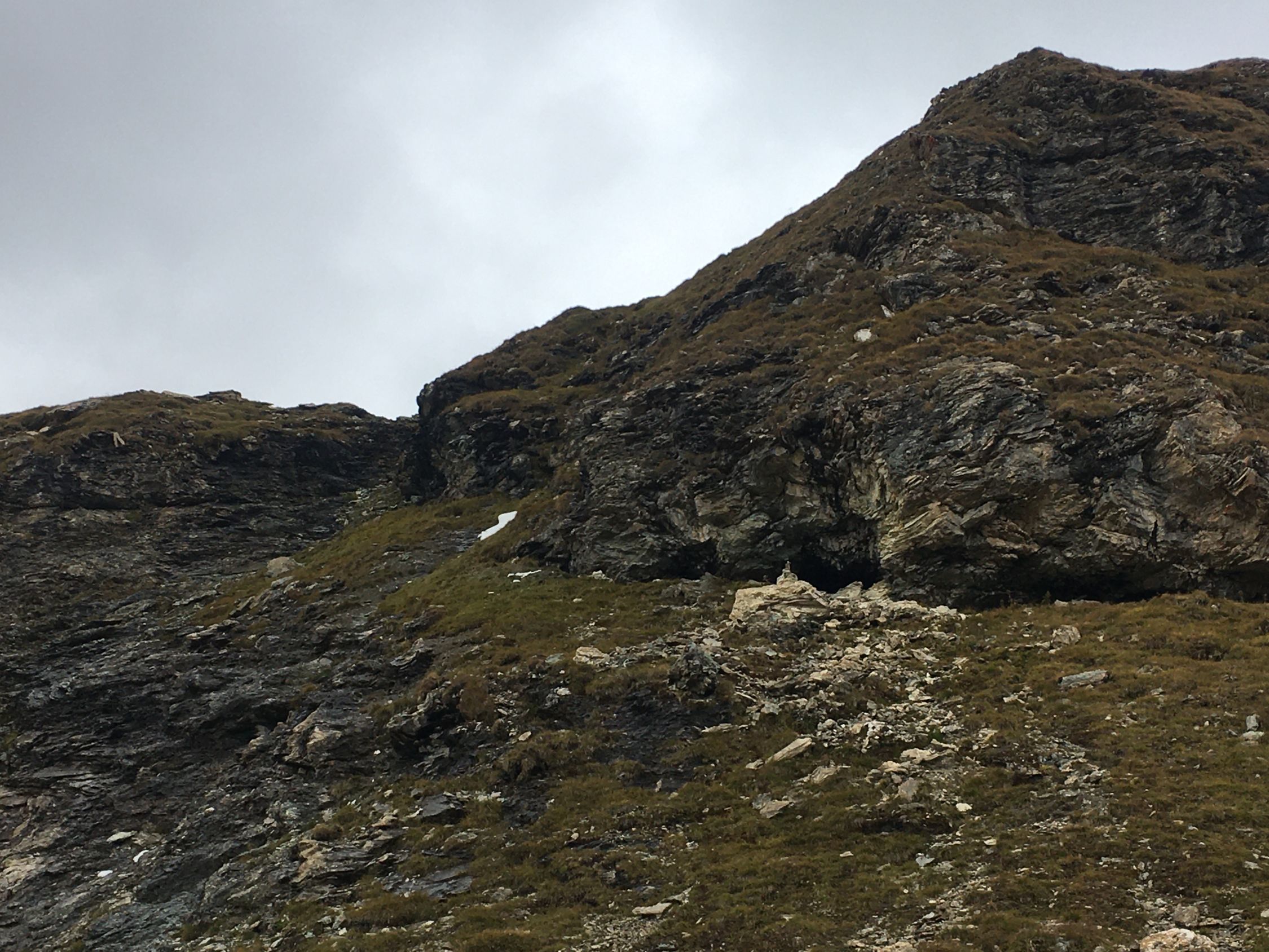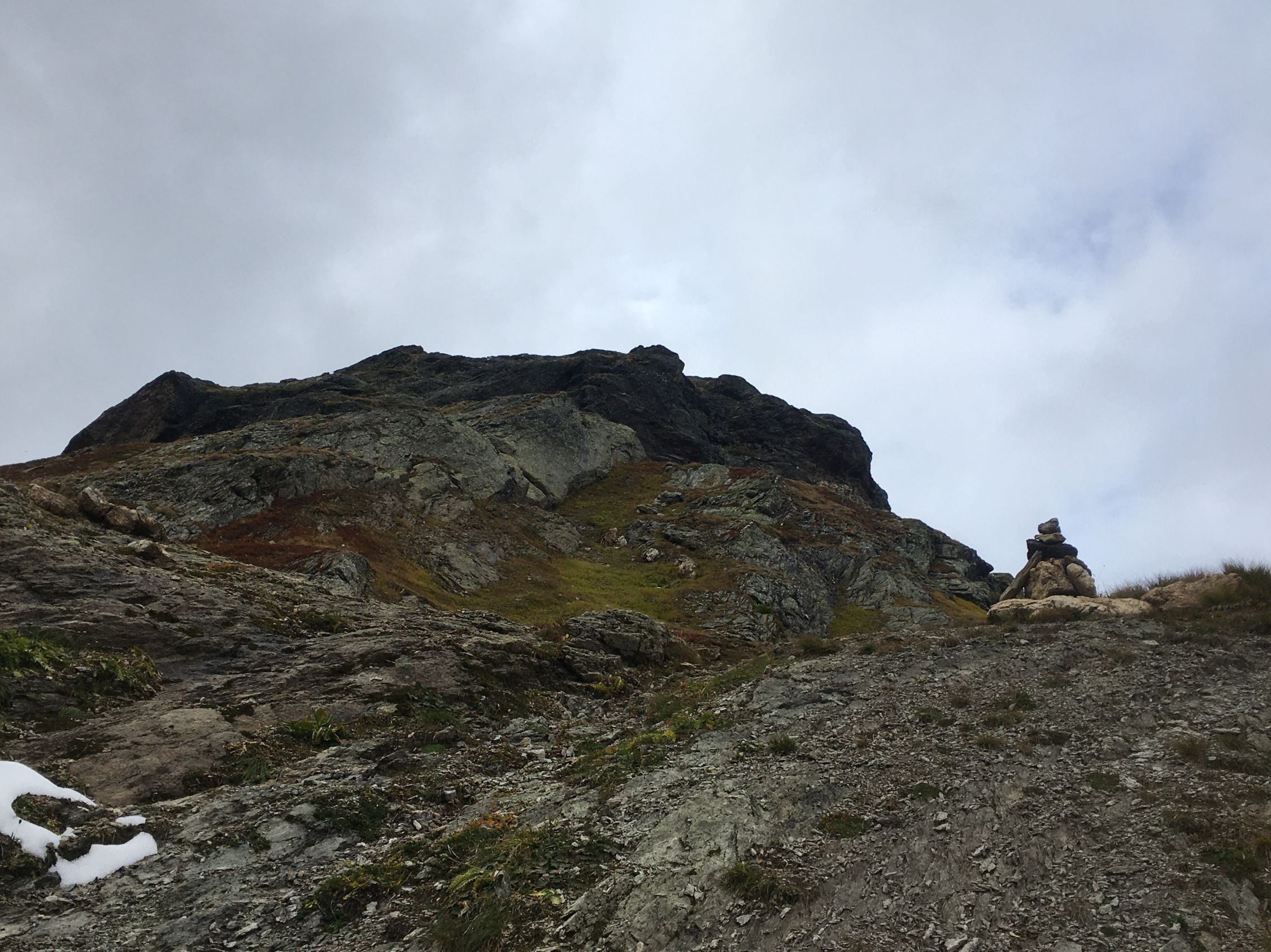Herbsttour auf den grossen Felsklotz P. 2582 in der Ostflanke Piz d‘Emmat Dadora, T4. Start La Veduta 8.40 Uhr, 1 Grad, blauer Himmel, etwas Südwind. Bis Leg Grevasalvas Wanderweg rotweiss markiert, wenig später weglos mit einigen Wegspuren bis Punkt 2582. Sehr nass und teilweise noch gefroren. Bin dann noch etwas hoch in der Ostflanke bis Höhe 2625, Wetterumschwung, Nebel und alles viel zu nass, Umkehr, Pause und Abstieg wie Aufstieg.