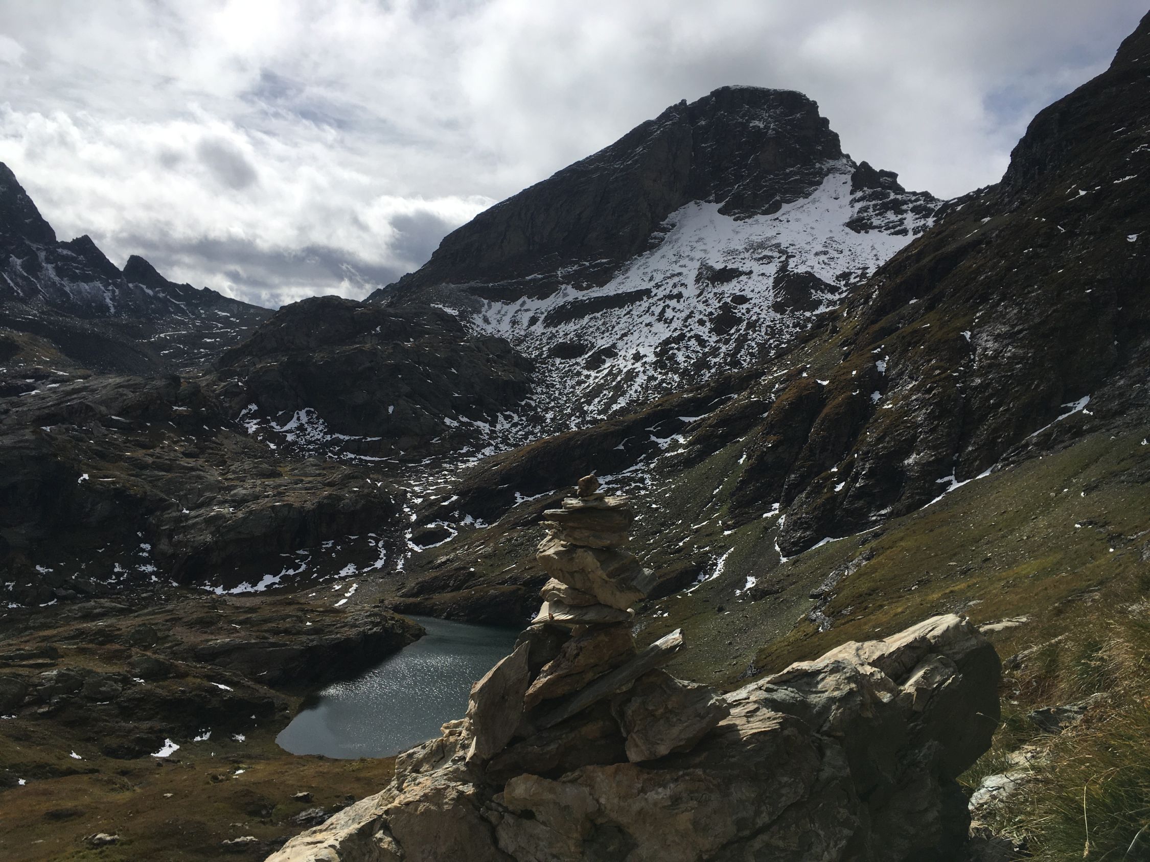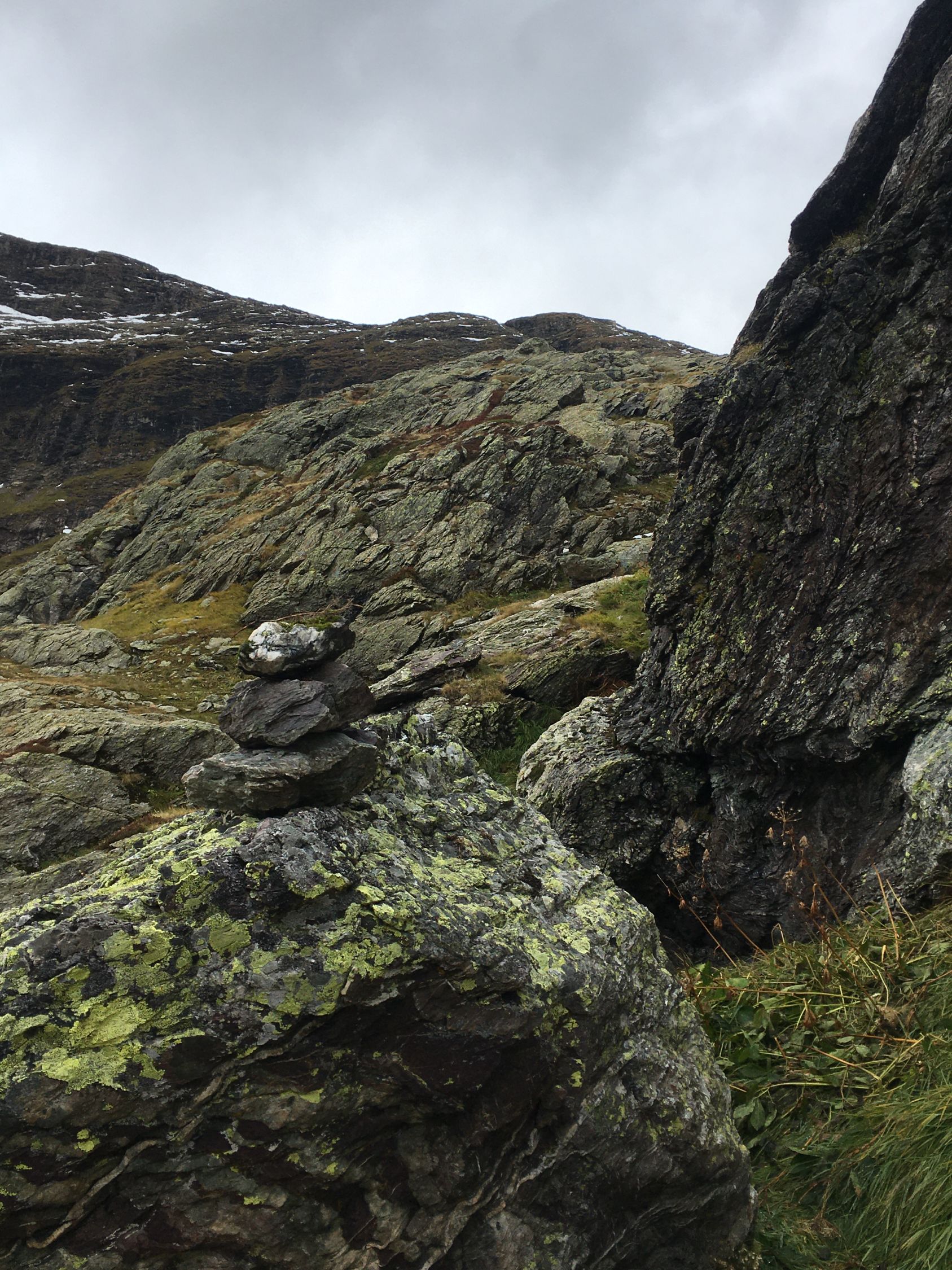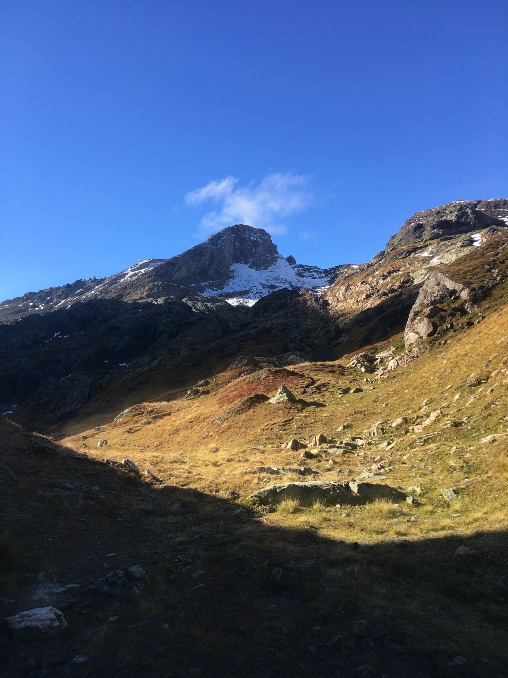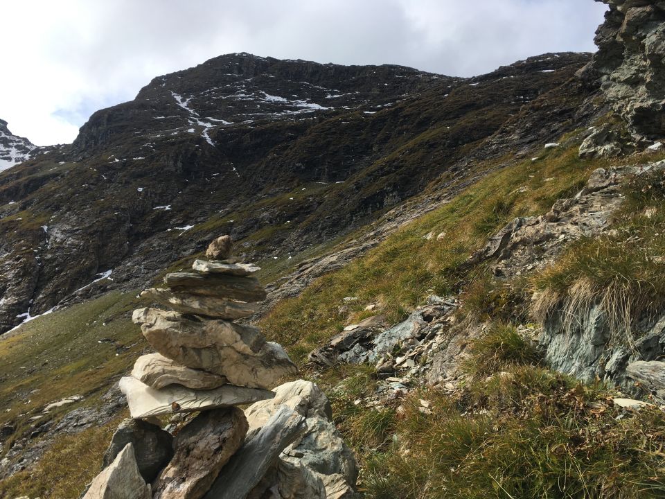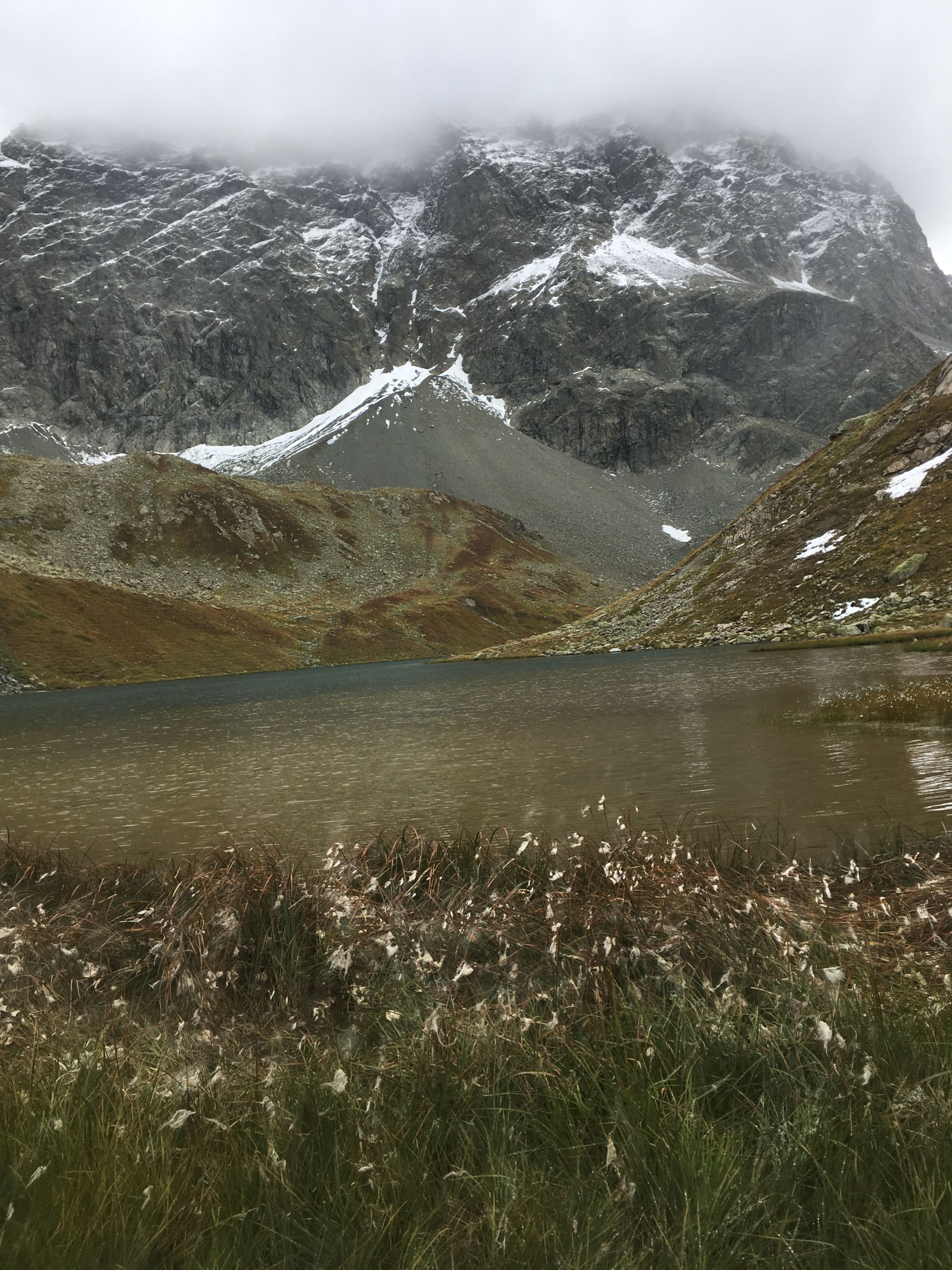 Herbsttour auf den grossen Felsklotz P. 2582 in der Ostflanke Piz d‘Emmat Dadora, T4. Start La Veduta 8.40 Uhr, 1 Grad, blauer Himmel, etwas Südwind. Bis Leg Grevasalvas Wanderweg rotweiss markiert, wenig später weglos mit einigen Wegspuren bis Punkt 2582. Sehr nass und teilweise noch gefroren. Bin dann noch etwas hoch in der Ostflanke bis Höhe 2625, Wetterumschwung, Nebel und alles viel zu nass, Umkehr, Pause und Abstieg wie Aufstieg.