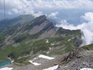 Von der Bergstation der Älplibahn zum Unterst See. Über den NO Grat (T3, kurze Stellen T4) abwechlungs- u. blumenreich zum Glegghorn. Ca. 15 Min zurück auf dem Grat und dann die N-Flanke absteigen bis ca. 2100 m nach W queren und hoch zur Tüf Furgga. Von dort alles über den Grat des Schwarzhorns T5 (25 m Seil war an Absteigstelle beruhigend) zum Fläscher Fürggli. Leicht zum Falknis Gipfel. Abstieg weiss - blau markiert, mit Ketten gut gesichert zur Mazorahöhe und dann rot-weiss zur Alp Lawena. Von dort glücklicherweise in PW Mitfahrgelegenheit bis Triesen!!!