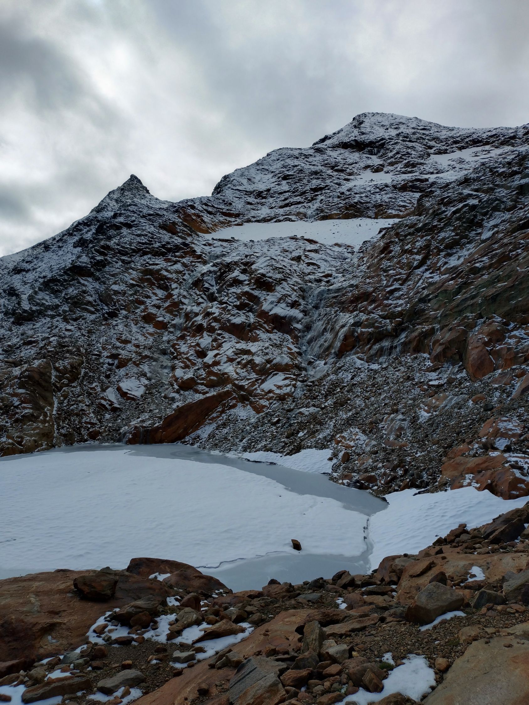 Das gut bezieht sich darauf, dass die Tour mit der nötigen Erfahrung aktuell gut machbar ist. Es hat ab 2600 einige Schneeflecken und oberhalb 2750 m liegt flächig Schnee (Steigeisen zwingend). Der Schnee ist aber (erstaunlicherweise) hart und grösstenteils tragend. Somit ist trotz Schnee ein effizientes Vorwärtskommen möglich und die Unternehmung empfanden wir so als absolut lohnend.