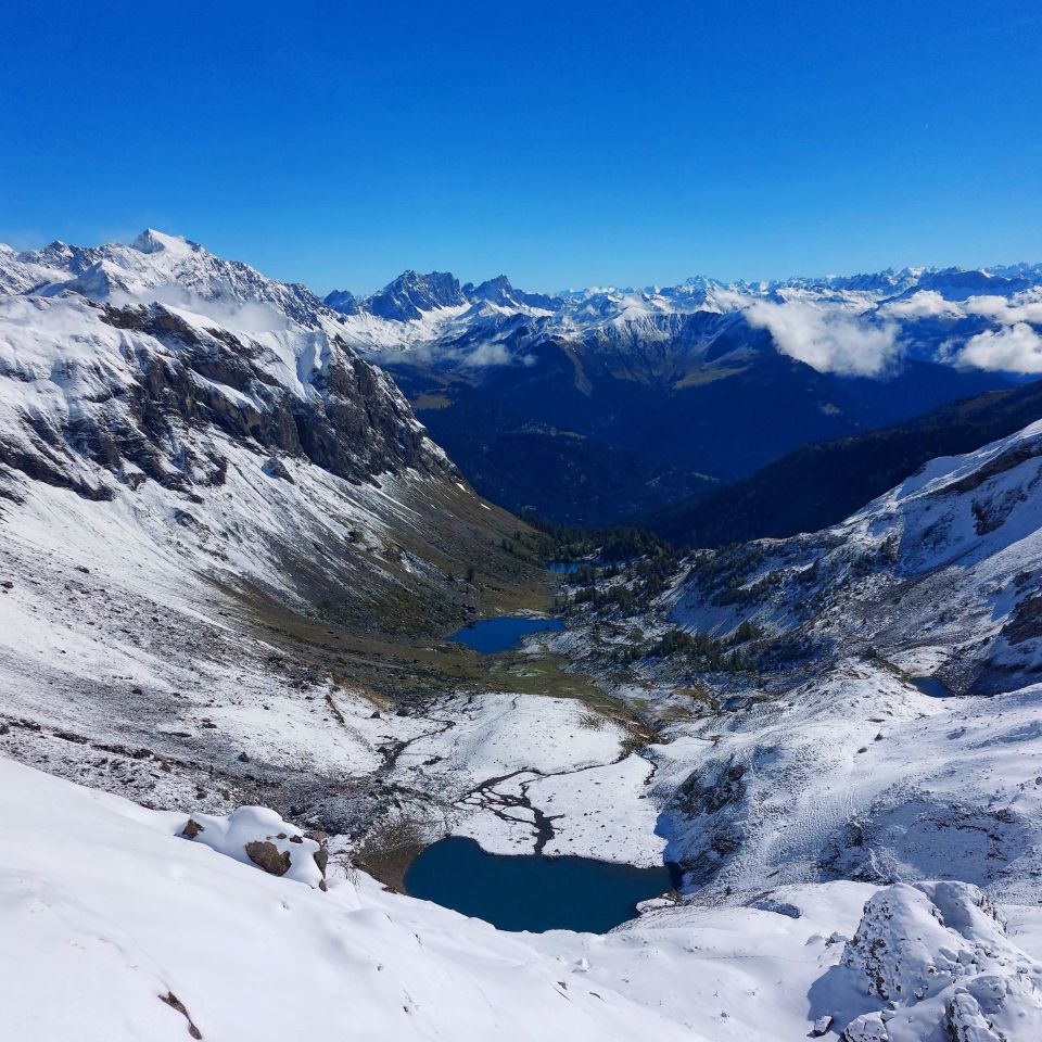 Mit dem E-Bike auf den Kamm und weiter den Wanderwegen entlang. Unterhalb Fäscher Fürggli wird der Schnee tiefer , was sich bis auf den Gipfel durchzieht. Beim Aufstieg Pulver, im Abstieg schon Sulz.