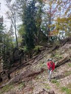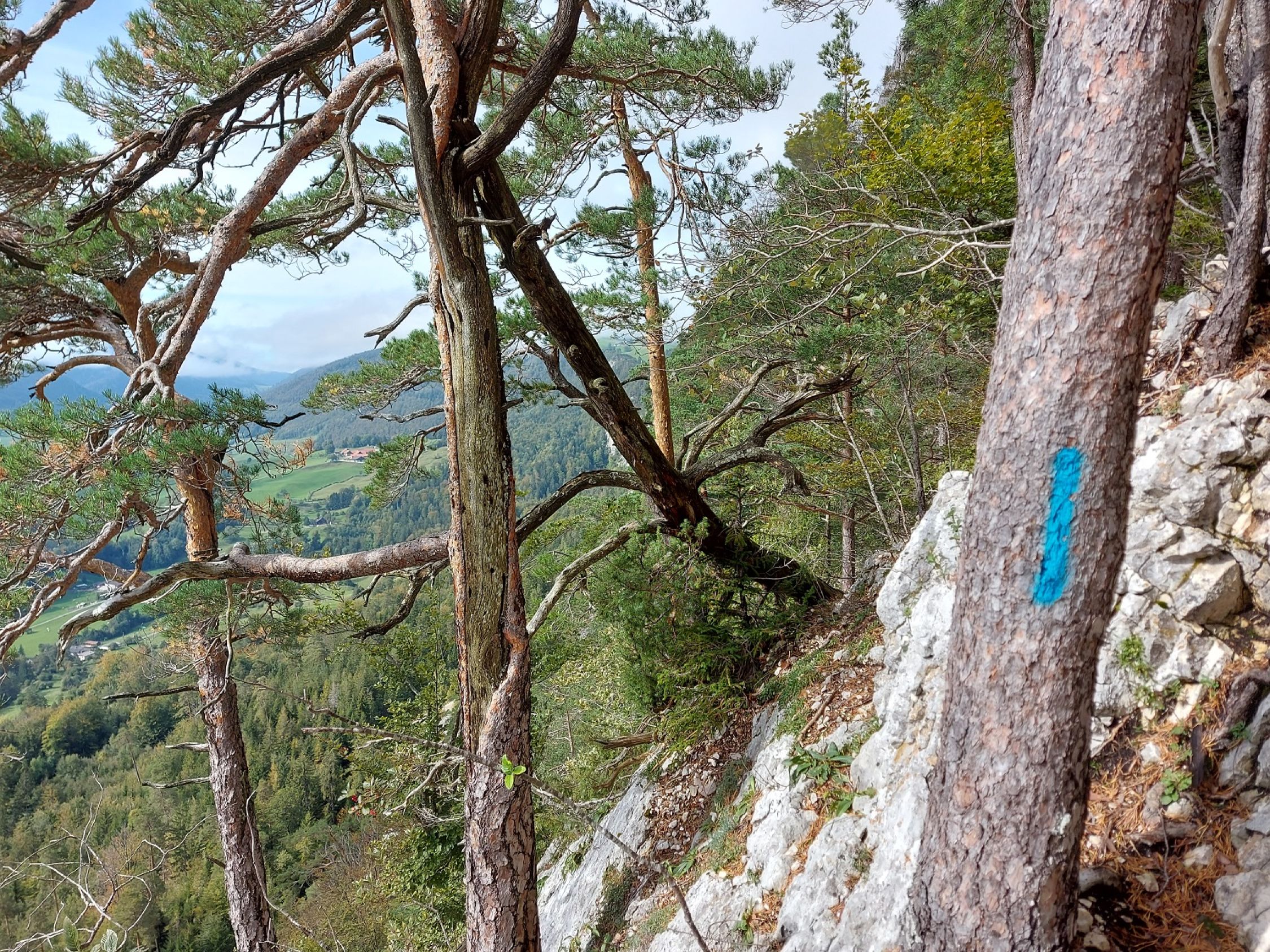 Nach dem Viadukt sind ab der Felsstufe anscheinend neue blaue Markierungen angebracht. Diese Markierungen entschärfen die Tour ganz wesentlich. Trotzdem ist an recht vielen Stellen die Orientierung nicht einfach. Weitere blaue Markierungen sollten nicht angebracht werden, ansonst der Charakter dieser Route verloren geht. Wegen der Orientierung und teilweise der Exposition und nicht wegen der technischen Schwierigkeiten scheint mir eine Einstufung T5 der Route besser zu entsprechen.