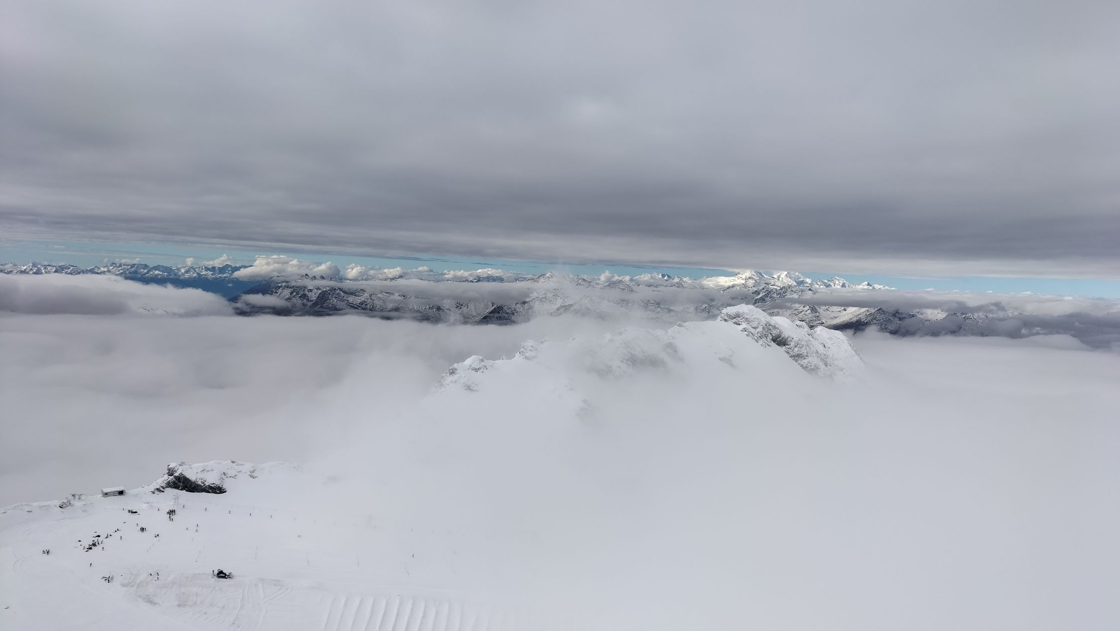 Start der Tour am 9.15 Uhr beim Stilfser Joch, die Ski konnten sofort montiert werden, guter Pulverschnee bis zum Ortlerhaus, dann im Mittelteil leider dichter Nebel, es konnte heute mit den Ski bis zum Gipfel hochgestiegen werden, für die Abfahrt hatte es mir aber am Gipfelhang noch zu viele Steine.