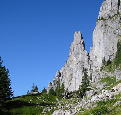 Vom Parkplatz Chli Sattel auf der Alpstrasse Richtung Chalet du Soldat, dann links (Markierung auf Stein) zum Sektor Waldeck in ca 1Std. Landschaftlich schön.