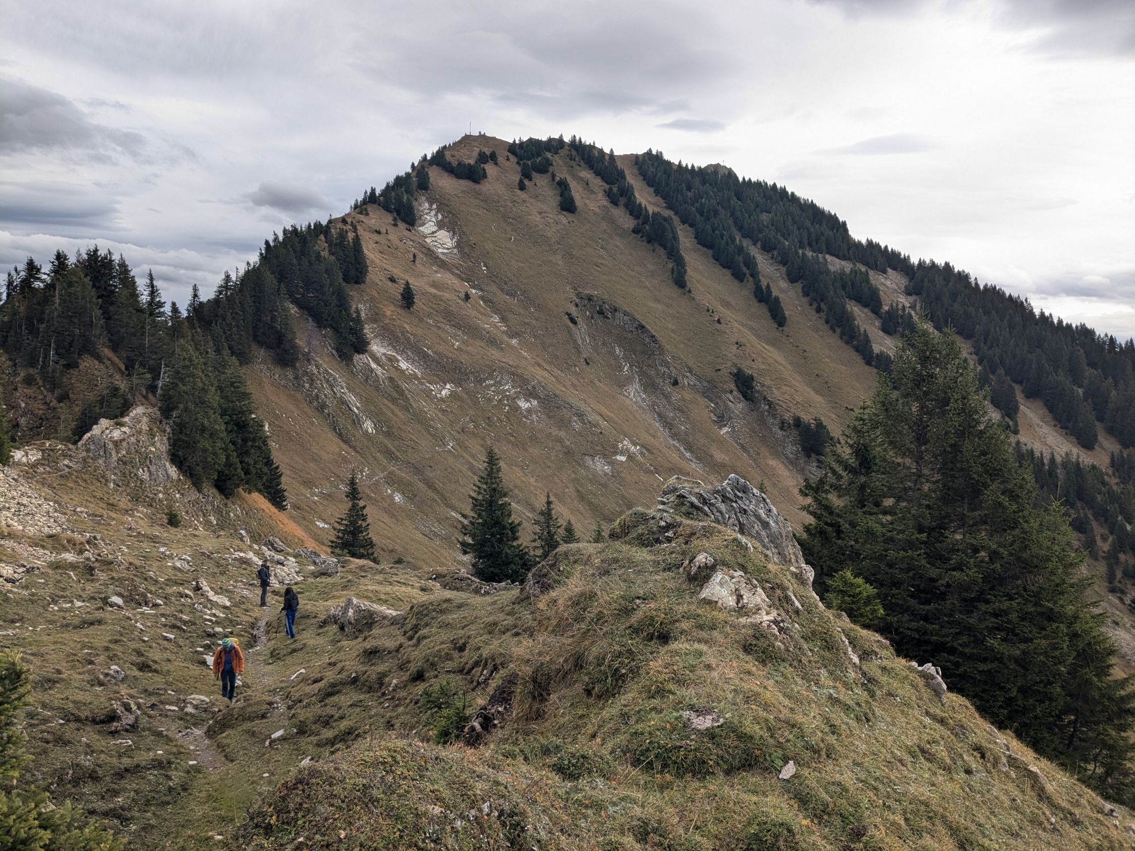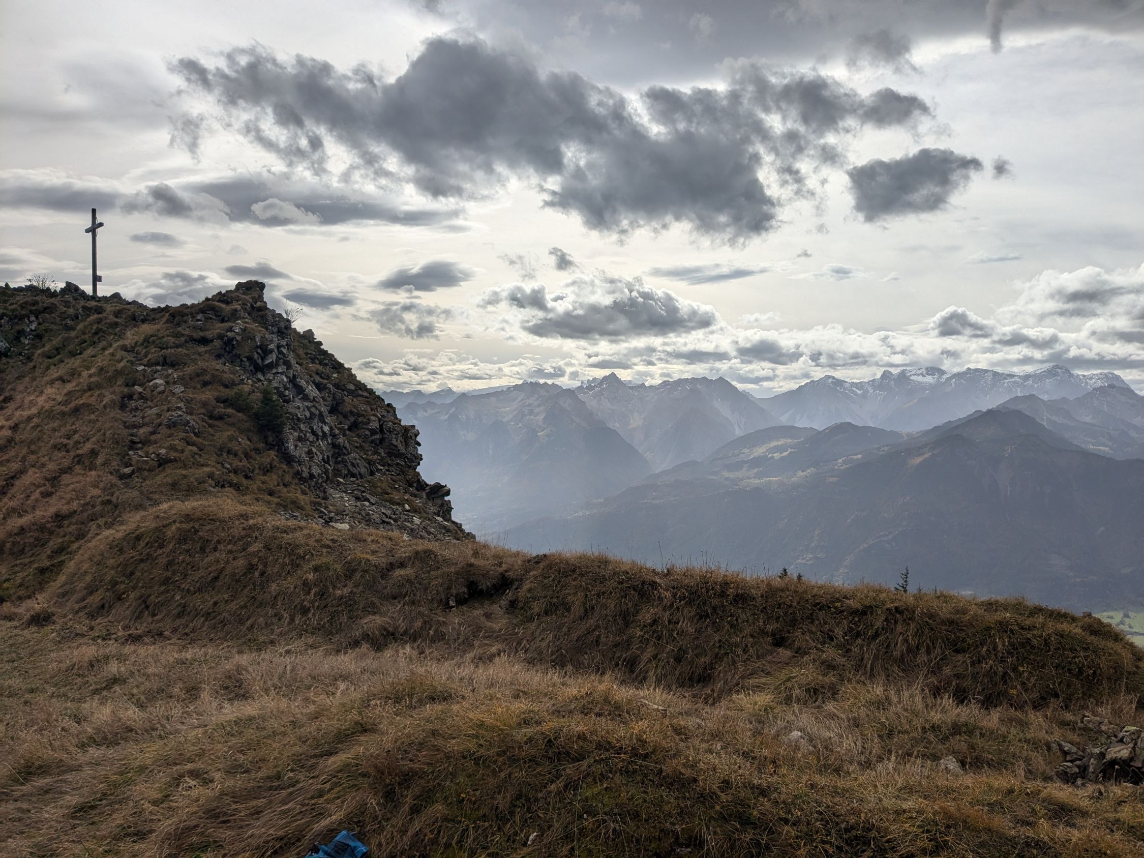Wege mehrheitlich feucht, aber gut zu gehen. Leicht föhnig, trüber Himmel, aber gute Sicht