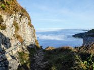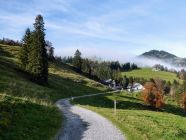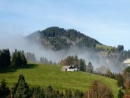 Tourstart um ca.6.20 bei 9° und nur leichter Bewölkung mit Mondschein. Im Rheintal bildete sich Hochnebel, im Appenzellerland lag bereits Nebel, der bis etwa zum Ruhsitz reichte. Nach Sonnenaufgang gab's schönes Herbstwetter mit Schleierwolken.