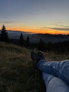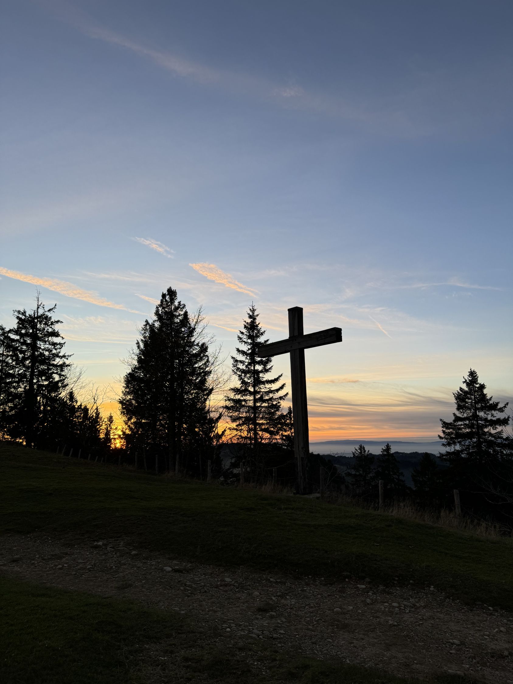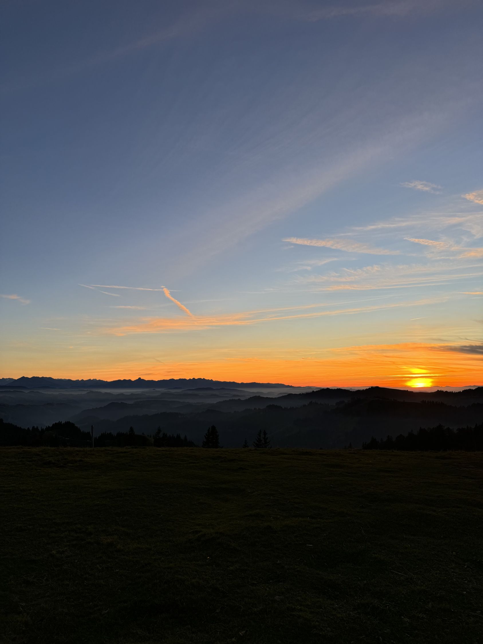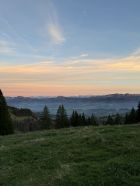 Schöner abend herbst spaziergang auf dem Napf. Einzelne minuten vor dem sonnenuntergang wäre ich auf gipfel arriviert mit ganz schöner blicke zum Schweizer Alpenraum.