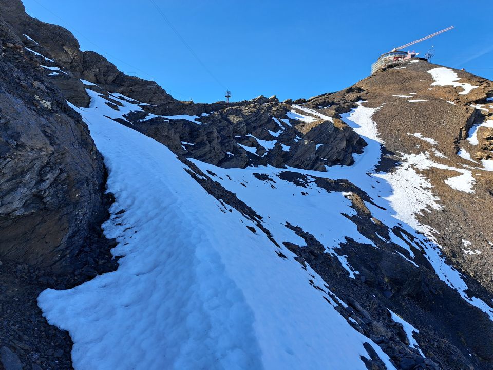 Damit du auf die Aussichtsplattform gelangst musst beim Piz Gloria links herum über das Baugerüst steigen.
