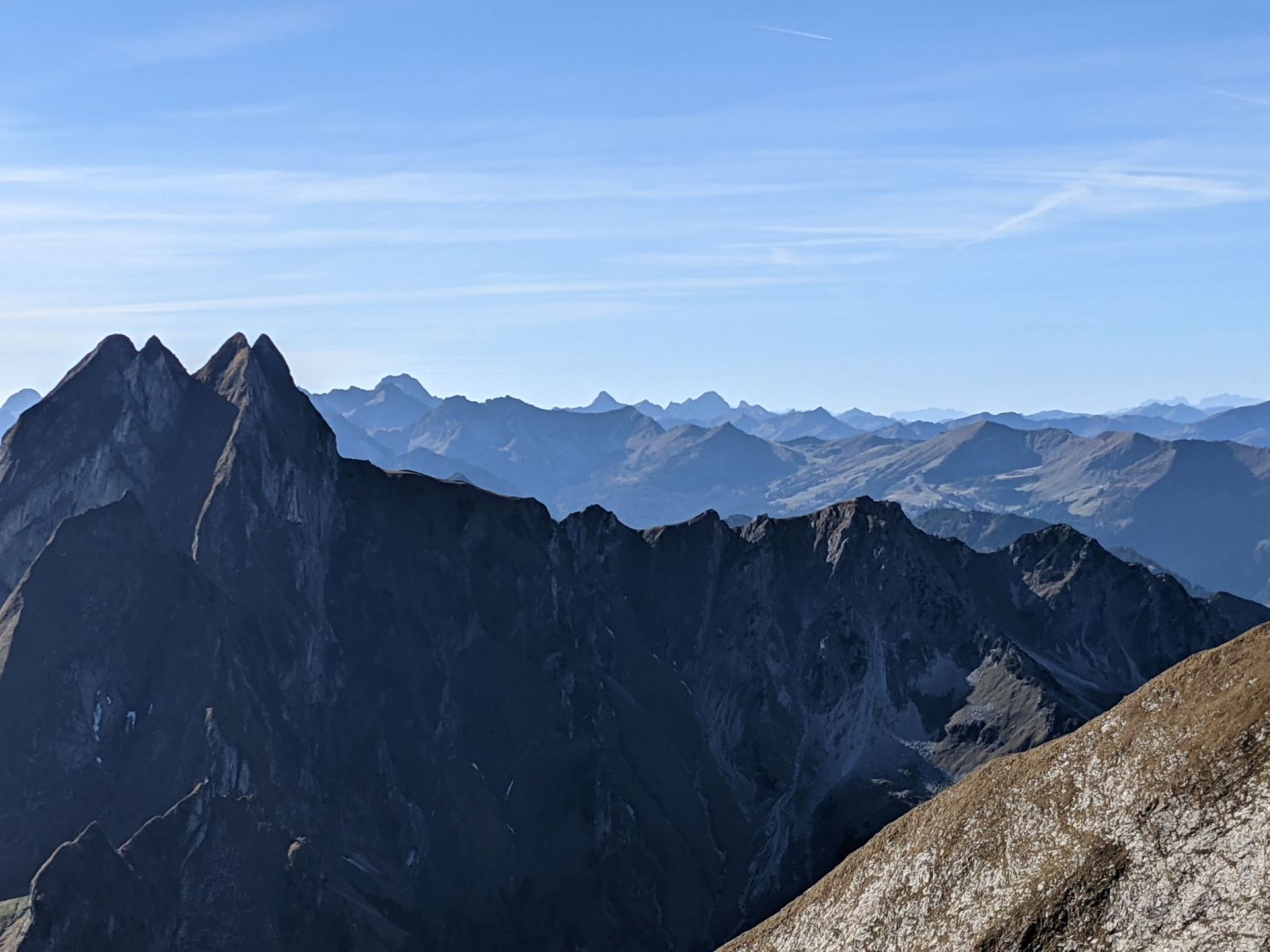 Ein Herbsttag wie man ihn sich nur wünschen kann. Klar, sonnig, nahezu windstill. Morgens auf dem Rad durchs Oytal waren Handschuhe schon angenehm. Aufstieg ab Käseralpe dann im T-Shirt.