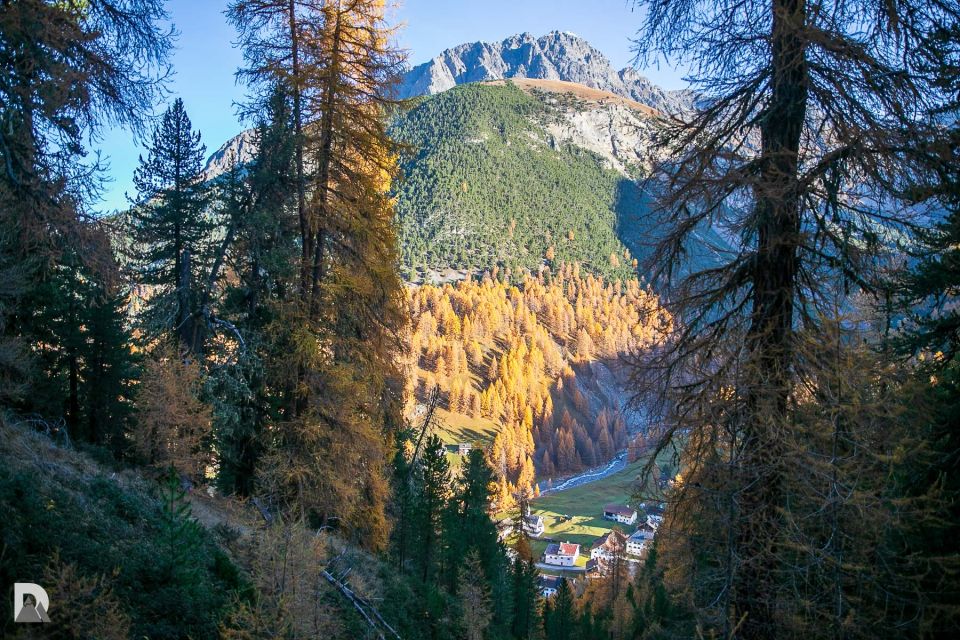 Perfekte Verhältnisse, alles trocken. Herrliche goldgelbe Lärchen und Aussicht auf den Ortler....