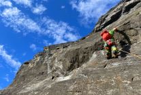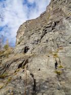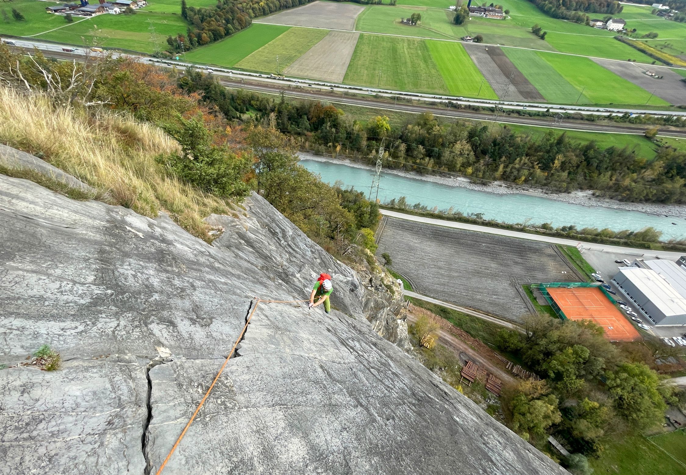Föhn und Sonne. Schwarzer Fels gefühlt bis auf 40 Grad aufgeheizt...