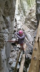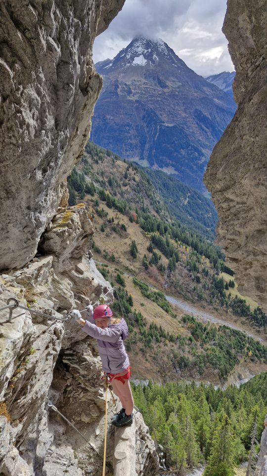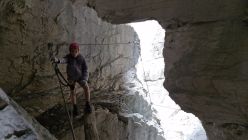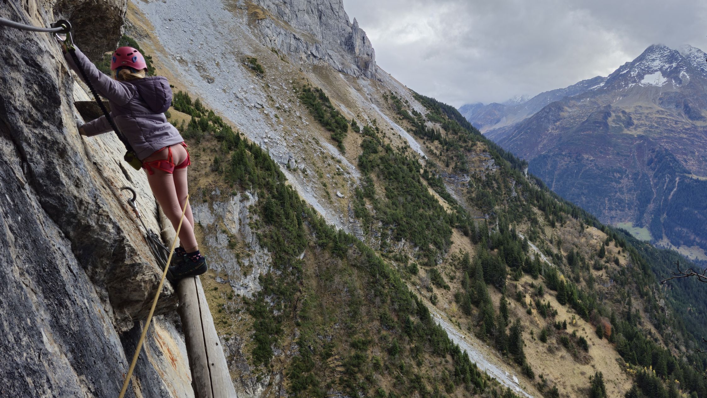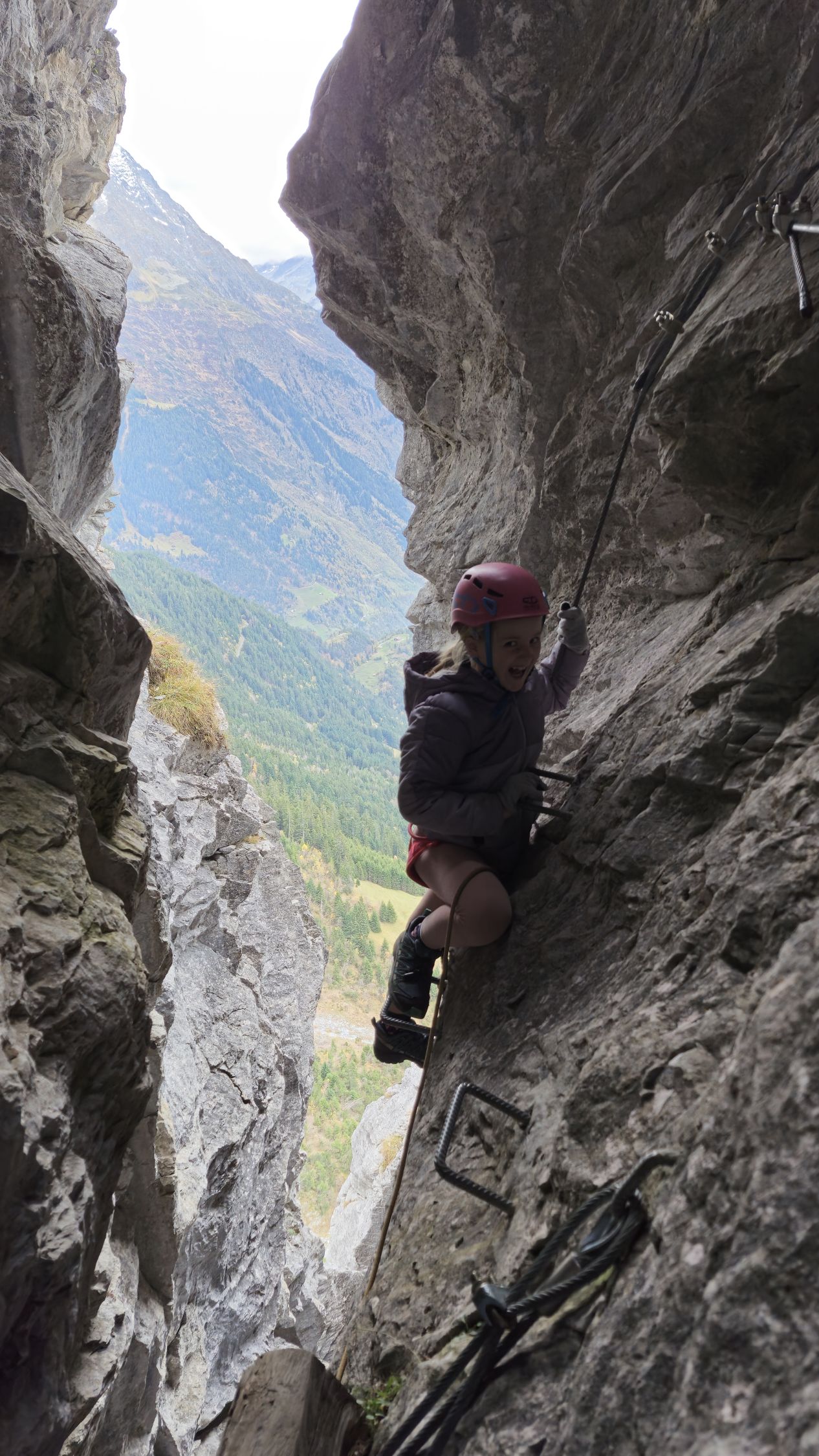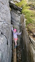 Alles trocken. Der Steig ist im besten Zustand. Wir sind um ca. 11.30 an der Bergstation gestartet und hatten den Steig für uns. Meine Tochter ist 1.32 m gross und kam an alle Sicherungen ran.