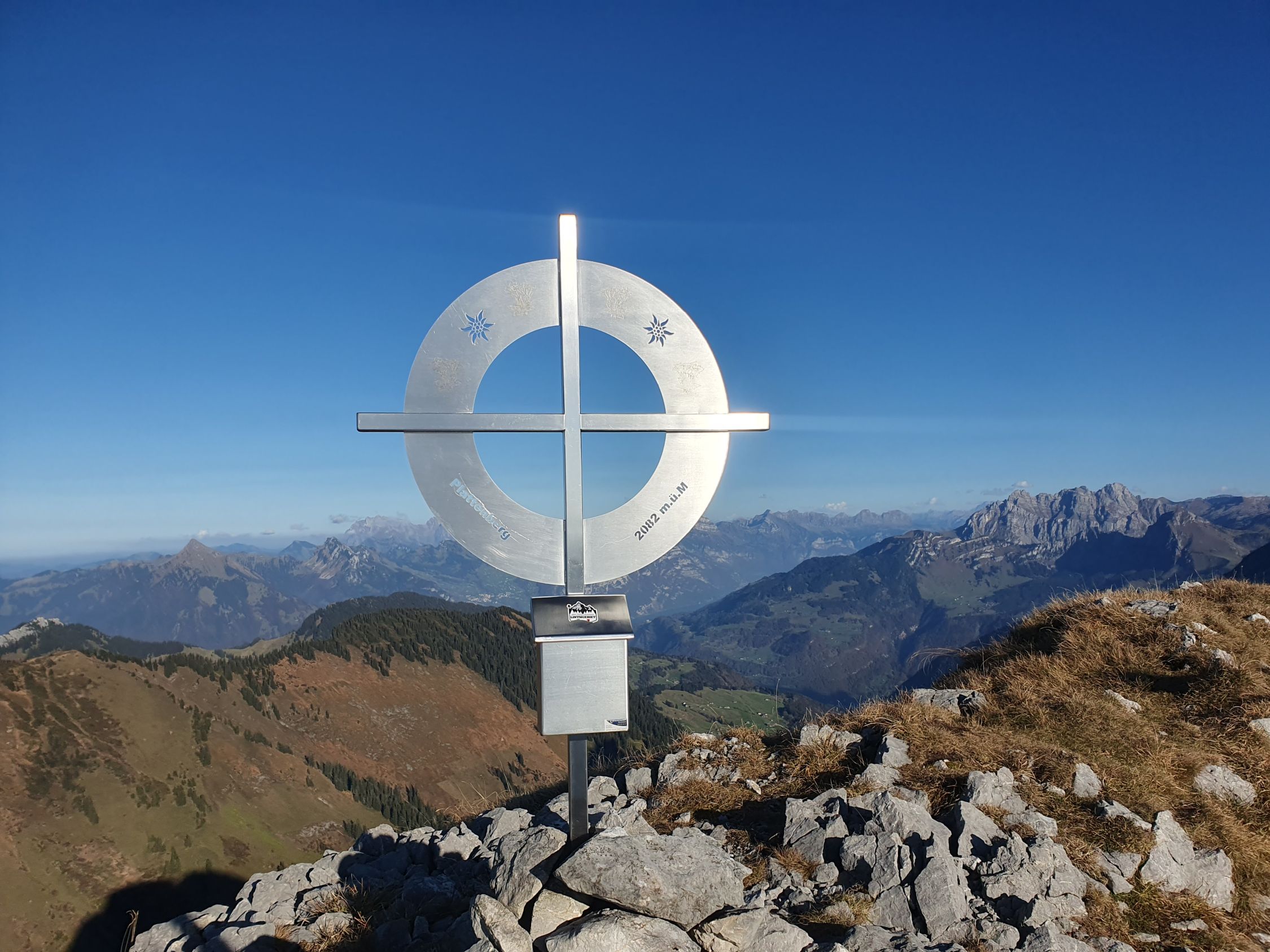 Nach 3.30 Std stand ich auf dem Schiberg. Pause, wollte ich jedoch beim Südgipfel mit dem Gipfelkreuz (P2043) machen. Dafür muss kurz in einem Sattel ab- und auf der anderen Seite wieder hochgeklettert werden.