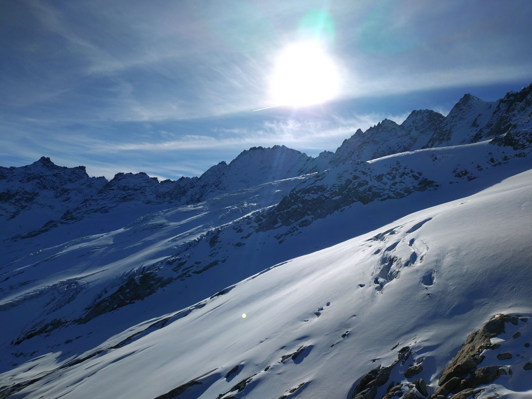Angenehme Temperaturen (dünner Pulli) und top Wetter. Im ersten Teil alles schneefrei. Im zweiten Teil oberhalb vom 2800 nordseitig etwas Schnee, südseitig schneefrei. Für die obersten Meter (auf und Abstieg) haben wir die Steigeisen im harten Schnee geschätzt.