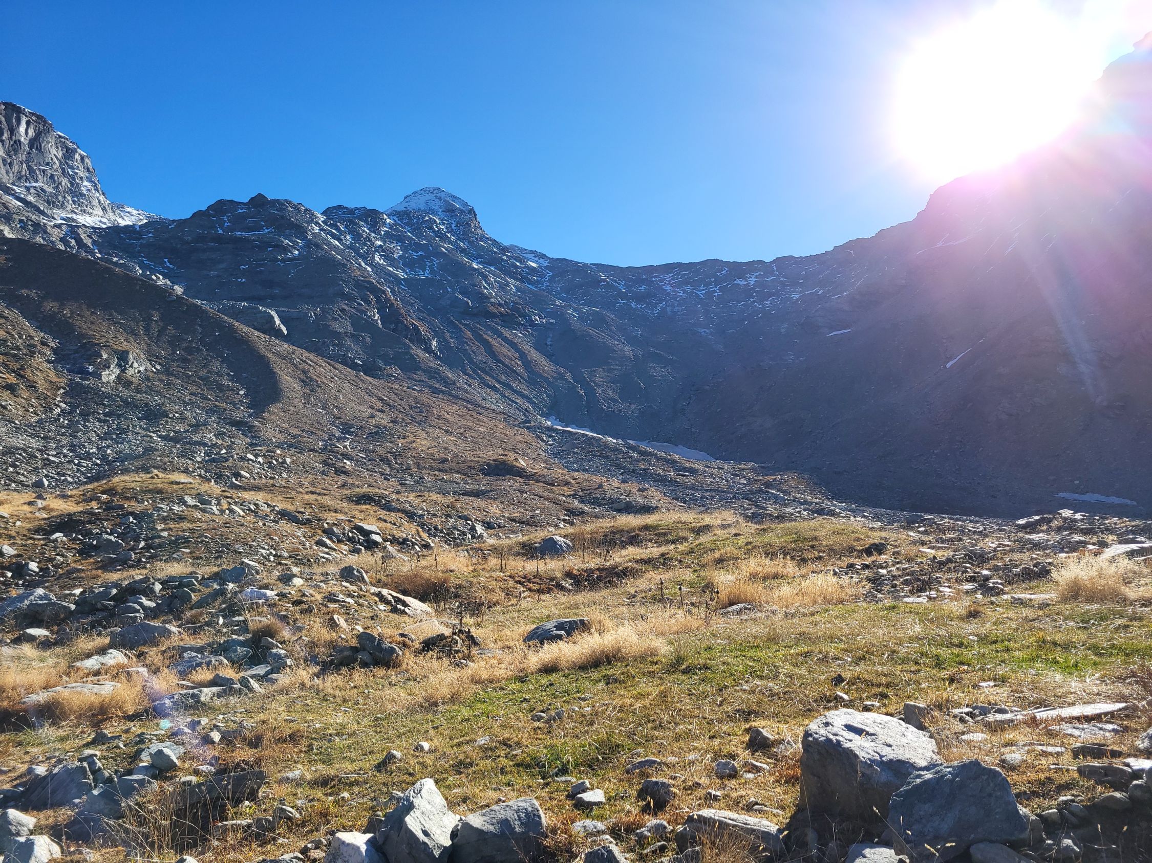 Ursprünglich wollte ich über den Cassinello zum Soredapass. Die Fixseile sind allerdings abgebaut. Deshalb über den Soredagletscher abgestigen.