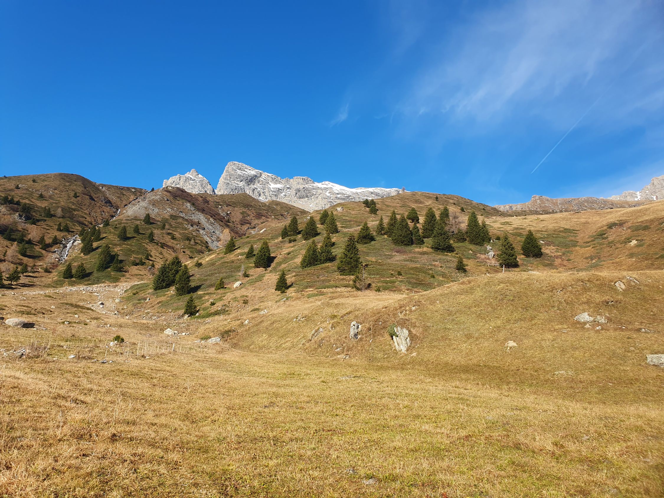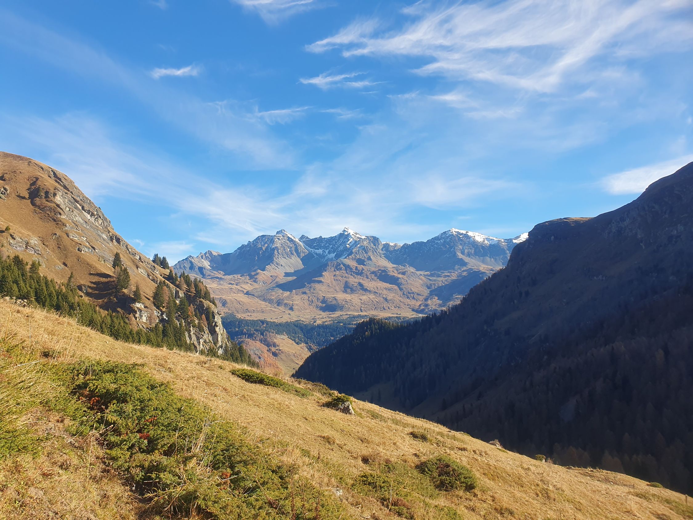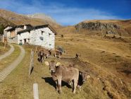Unterwegs in die Val da Faller hat mich netterweise ein Ehebauernpaar mich mit dem Auto bis Tga (P1923) mitgenommen. Dank des langen und stabilen Wetters haben sie, trotz Mehraufwand, ein Teil der Herde wieder auf die Alp gebracht. Den Tieren freuts!