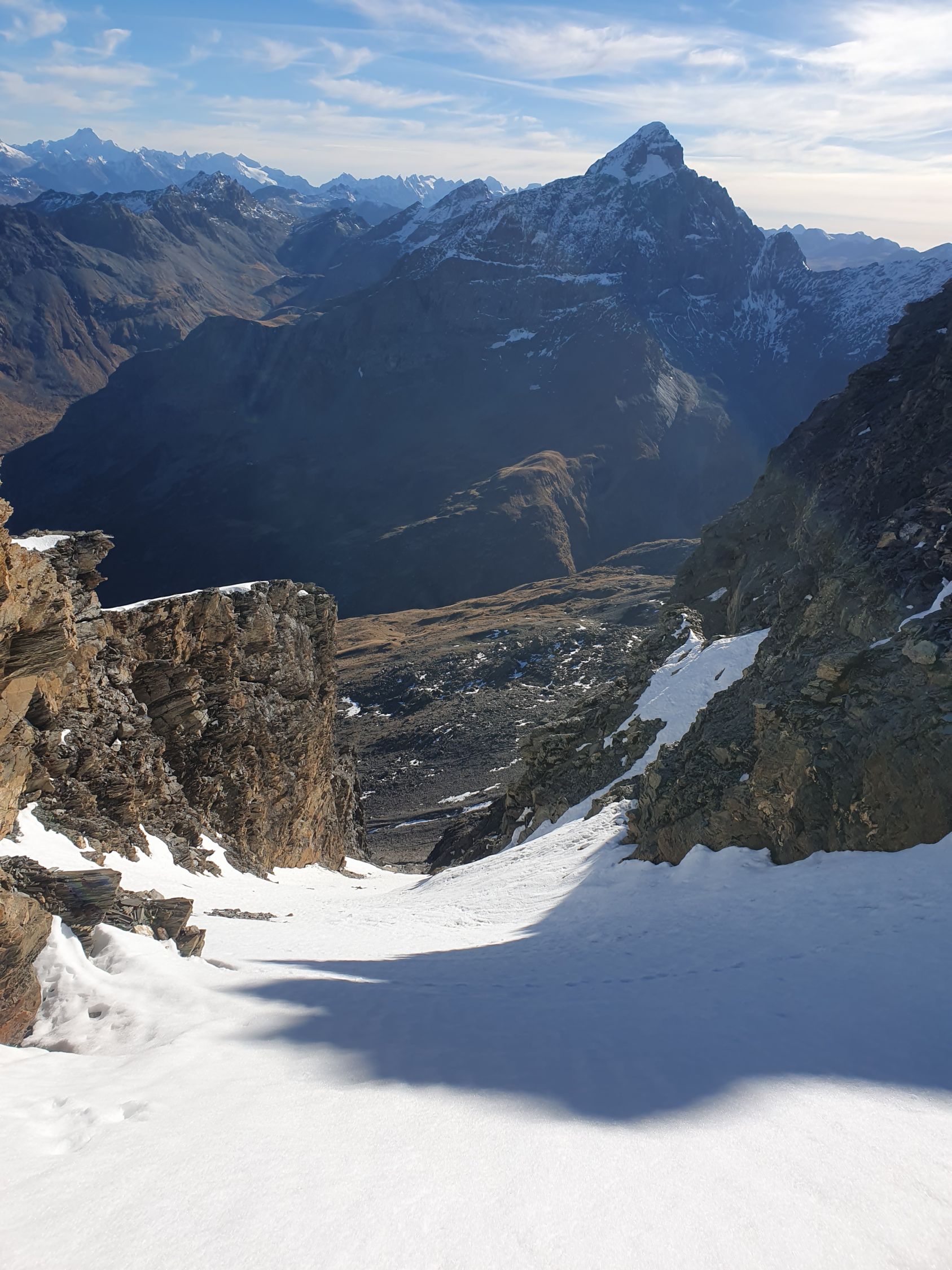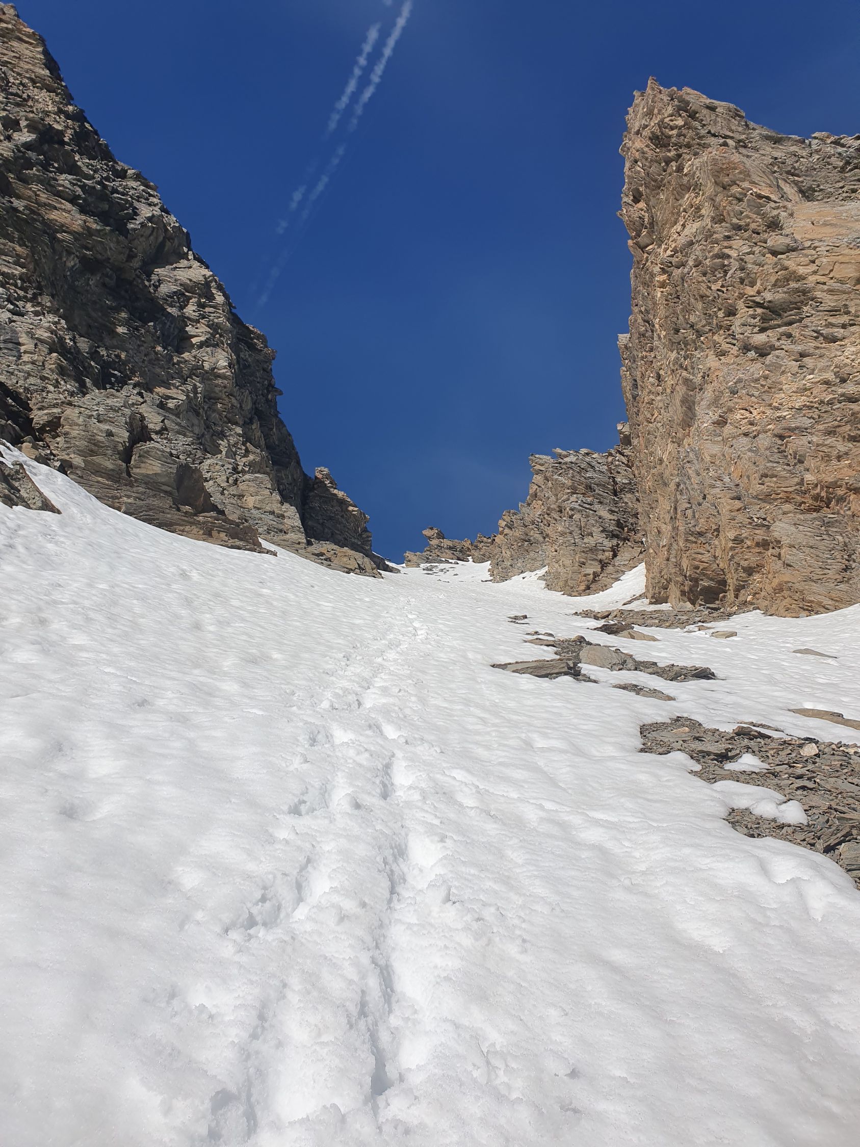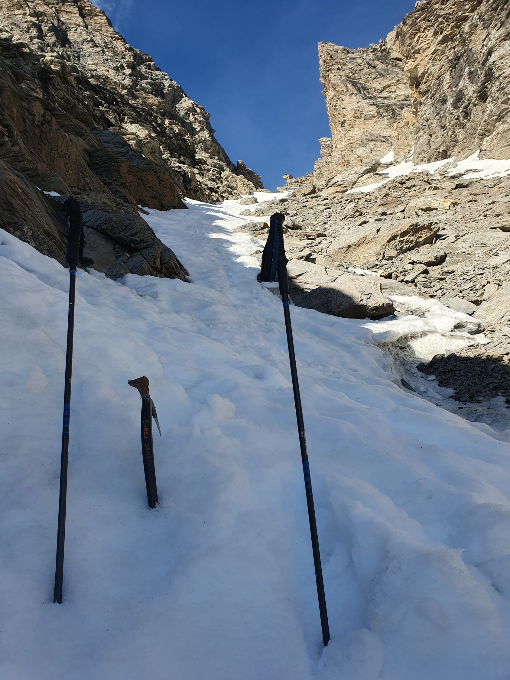 Als Abstieg wählte ich das S-Couloir und es war fast schon wie Skifahren ein Vergnügen da abzusteigen. Man konnte so quasi in der Falllinie hinabrennen; natürlich mit Steigeisen und Pickel. Zum rutschen war es dann aber doch leider zu steil...