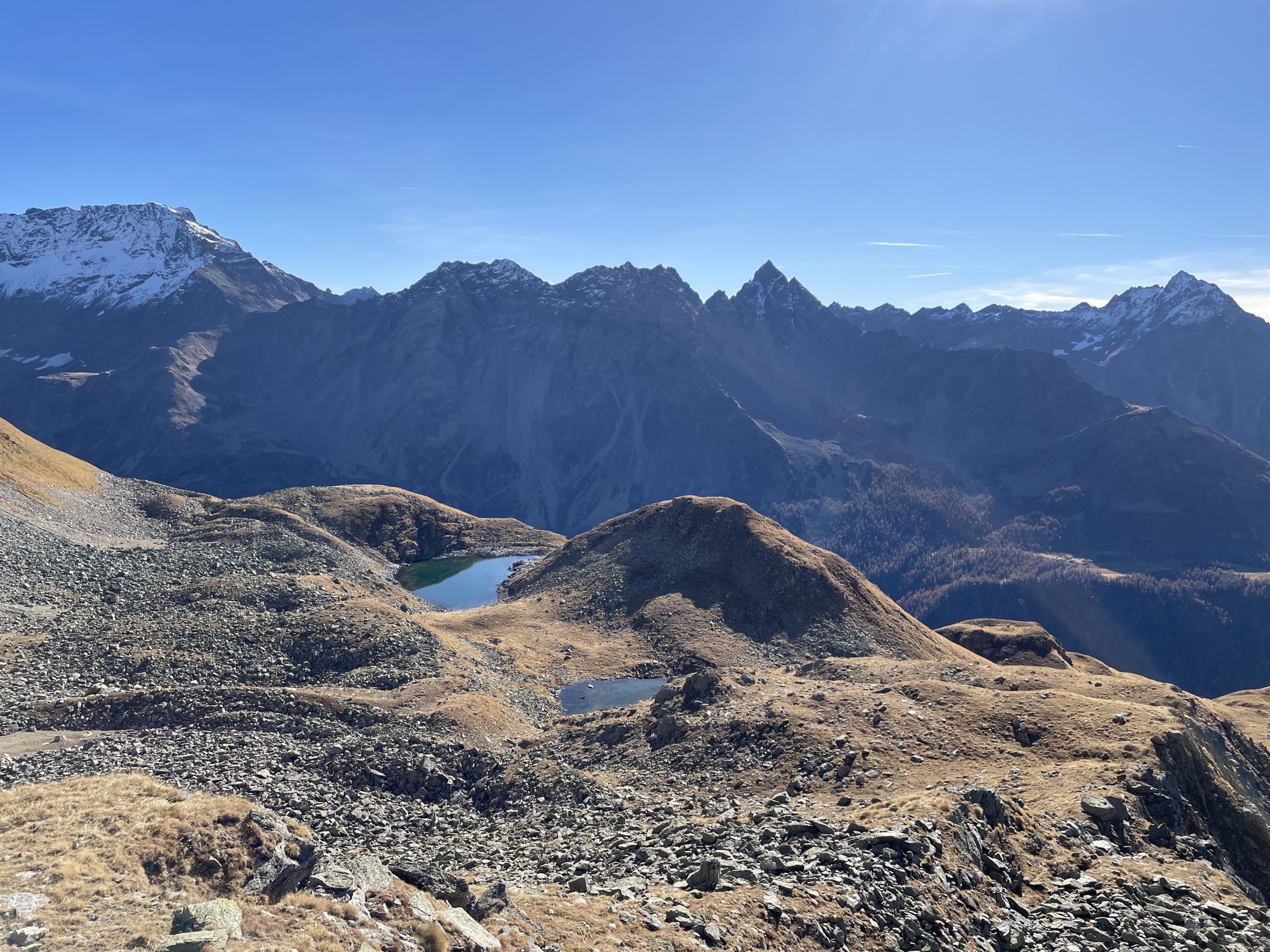 Überschreitung (Sfazù – Lungaqua - Camp – P 2087 – Valeni – P 2223 – Mandra da Salina - I Lagh da Mürasciola – Westrücken – Sandscharte – Corn da Mürasciola – Sandscharte – Nordcouloir – P 2203 - Camp – Rif. Saoseo – Lagh da Saoseo – Sfazú)