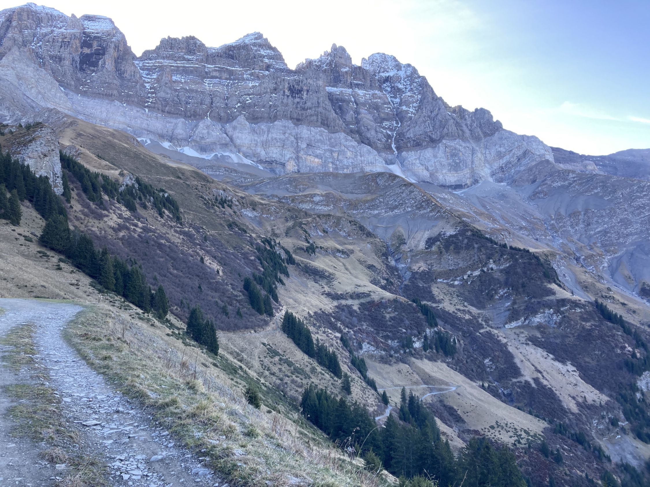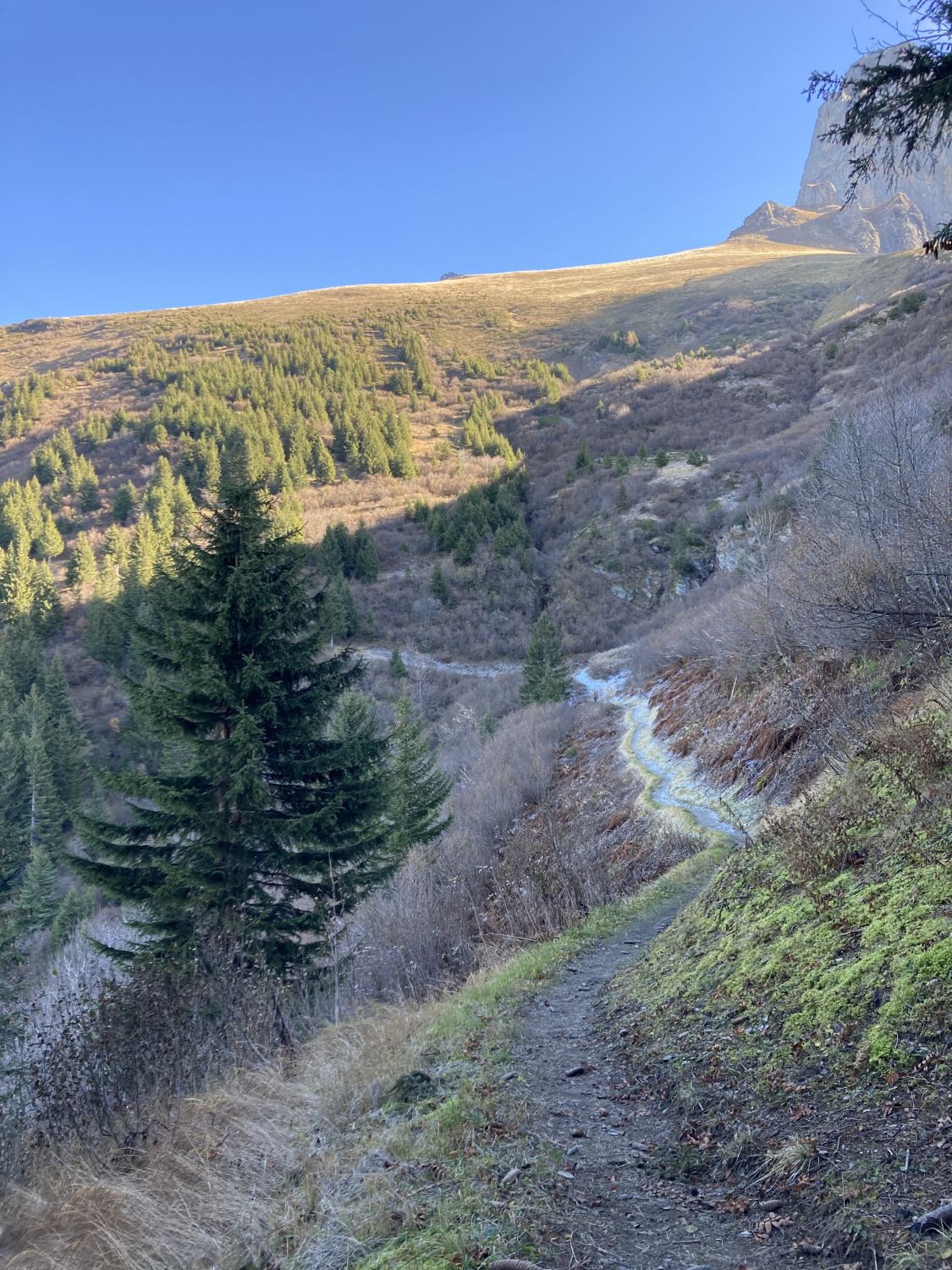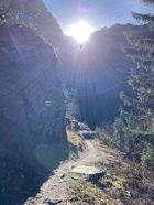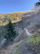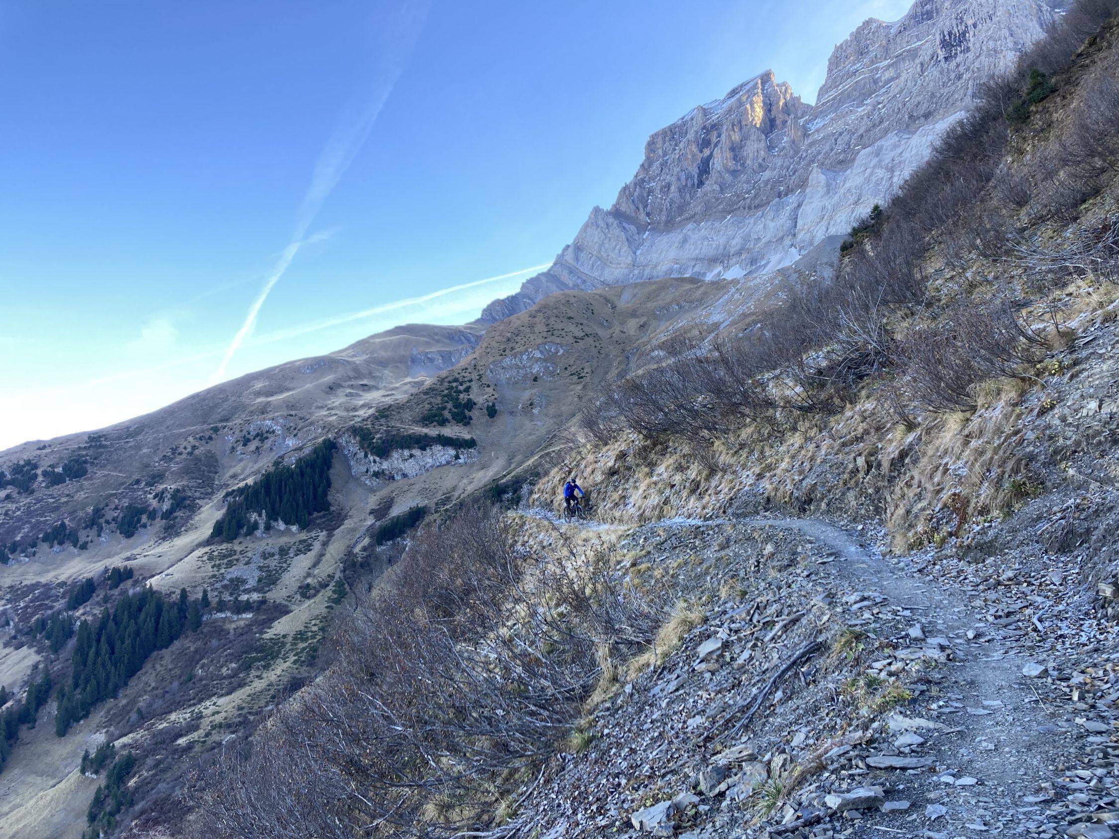 Zum Saisonabschluss wollten wir mit dem Bike noch mal höher rauf. Dass wir dafür die Nordseite der Dent du Midi wählten, war nur aus einem nebensächlichen Grund suboptimal: es war schattig und ziemlich kalt. Ab ca 1900 m auf dem Wanderweg, war so auch immer wieder der Boden gefroren. Insgesamt liess sich aber alles gut fahren. Einzig die Drainage-Hölzer im oberen Teil der Abfahrt von der Cabane d'Anteme waren fies rutschig. Im unteren Teil dann zunehmend sonnig und darum nicht mehr so hart. Dort oft super Grip gehabt. Steine generell trocken.