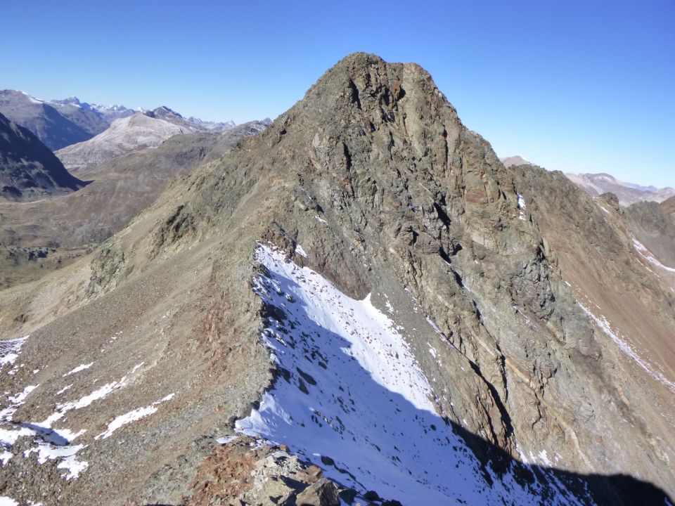 Unterwegs keinen Menschen heute angetroffen. Auch die Murmeltiere haben sich in ihre Höhlen verzogen. Das dicke, grüne SAC-Gipfelbuch wurde am 25.9.2016 gelegt, ist noch gut erhalten und zu 1/3 beschrieben. Letzter Eintrag ist datiert vom 2.11.2024.