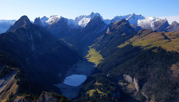 Kamor und Hoher Kasten vom Rheintal aus (1795m)