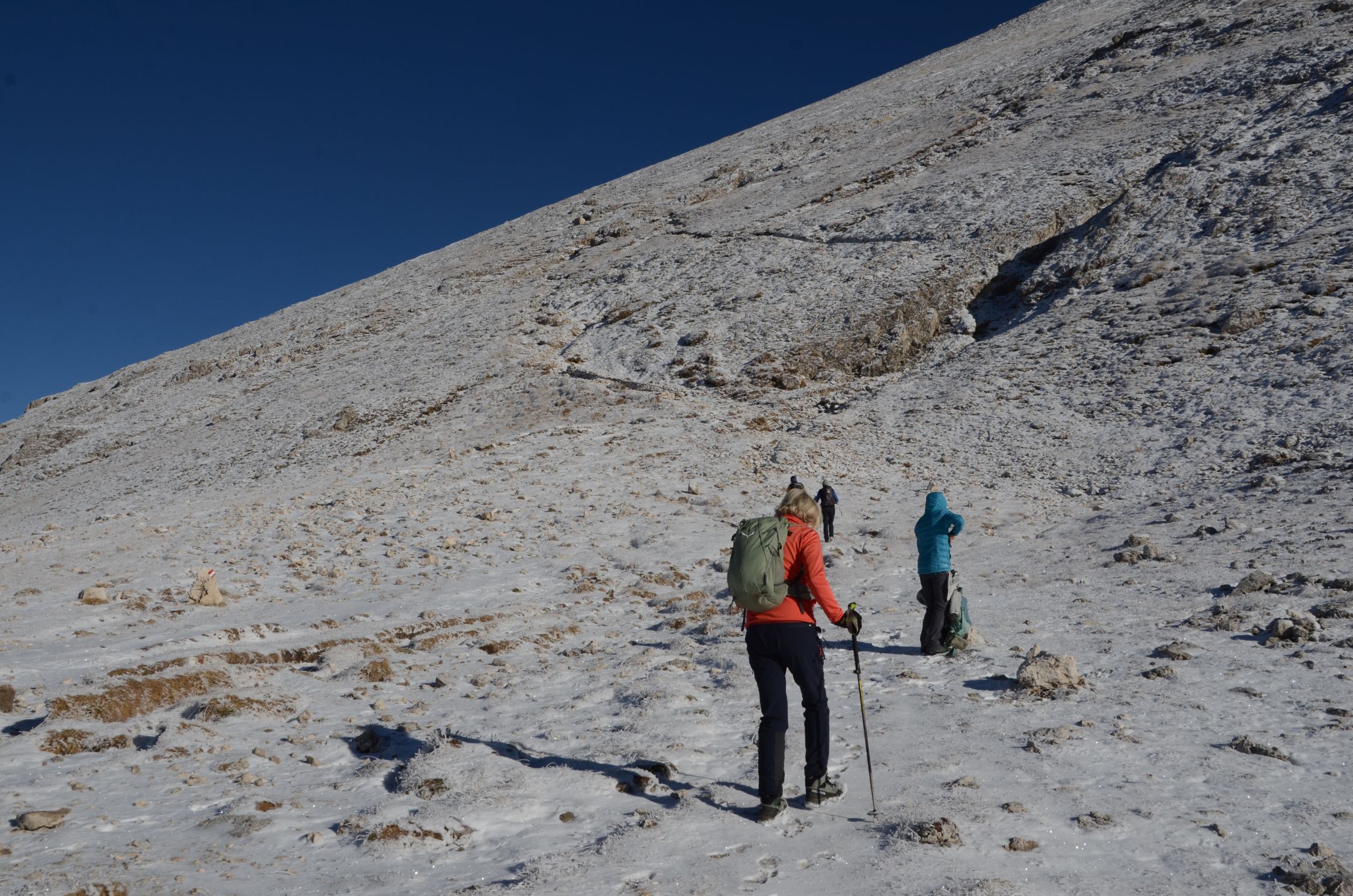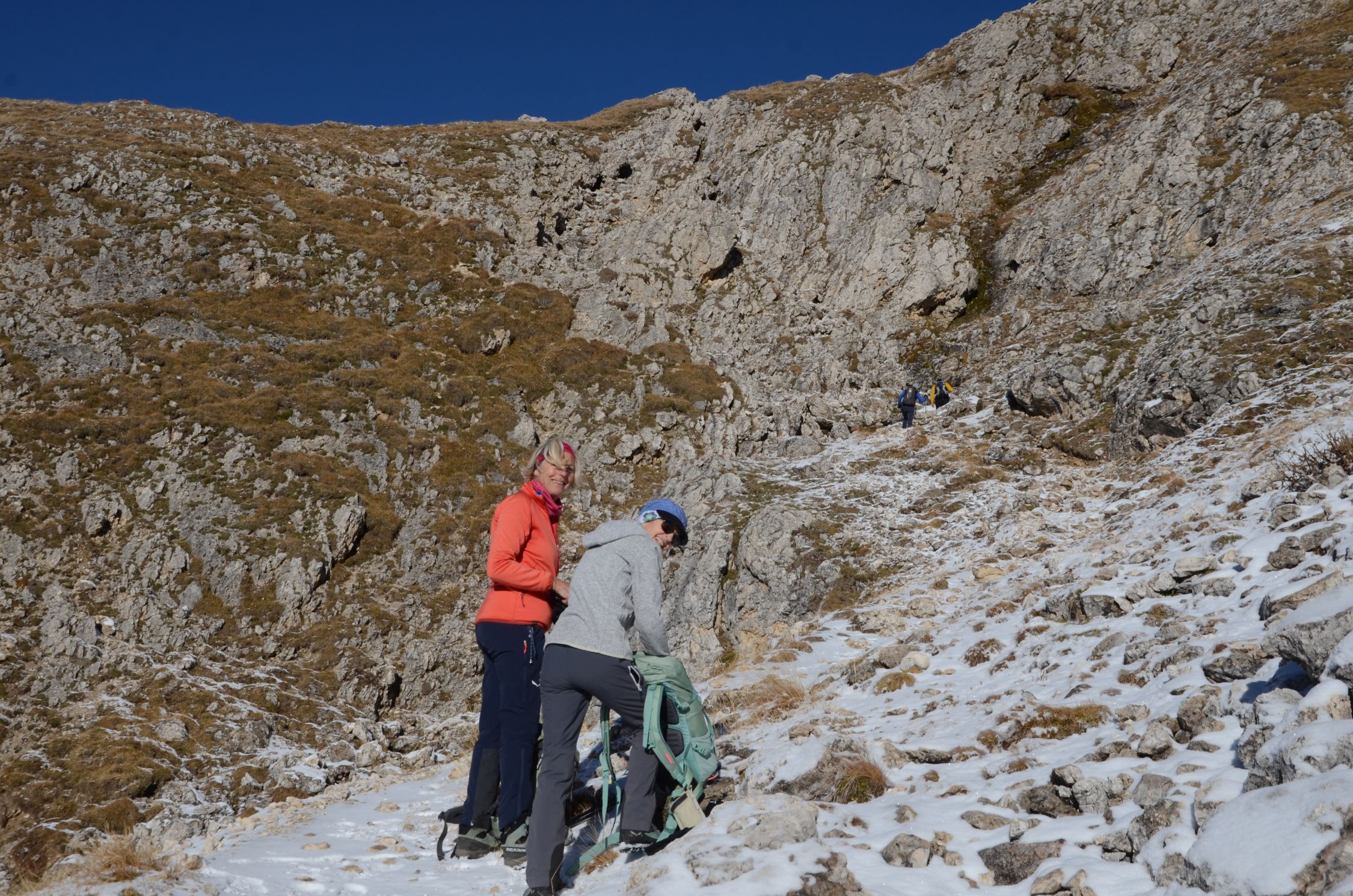 In der Nacht hat es ca 2-3cm geschneit. Die Felspassagen waren rutschig und es war Vorsicht angesagt.