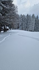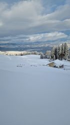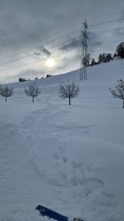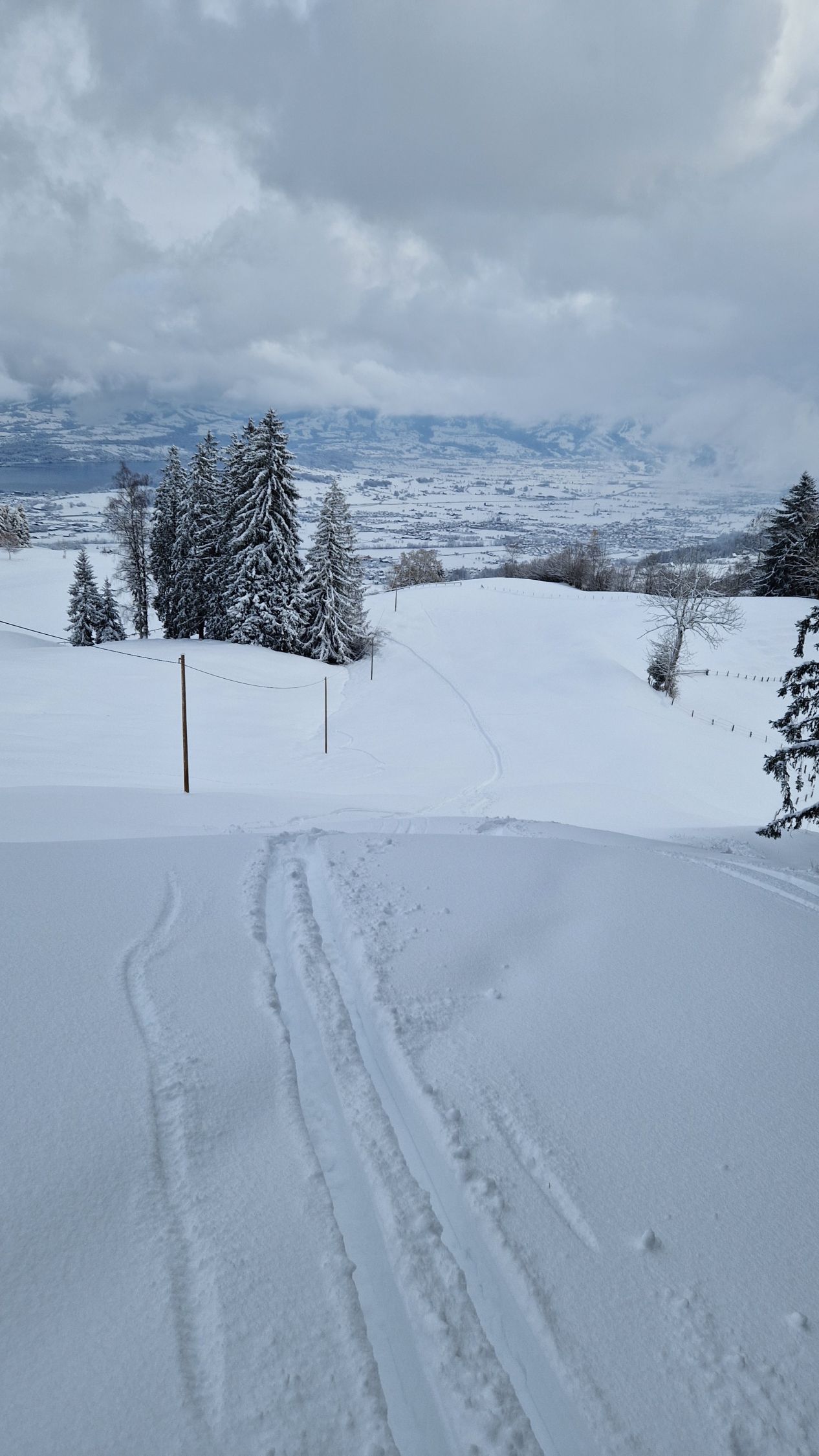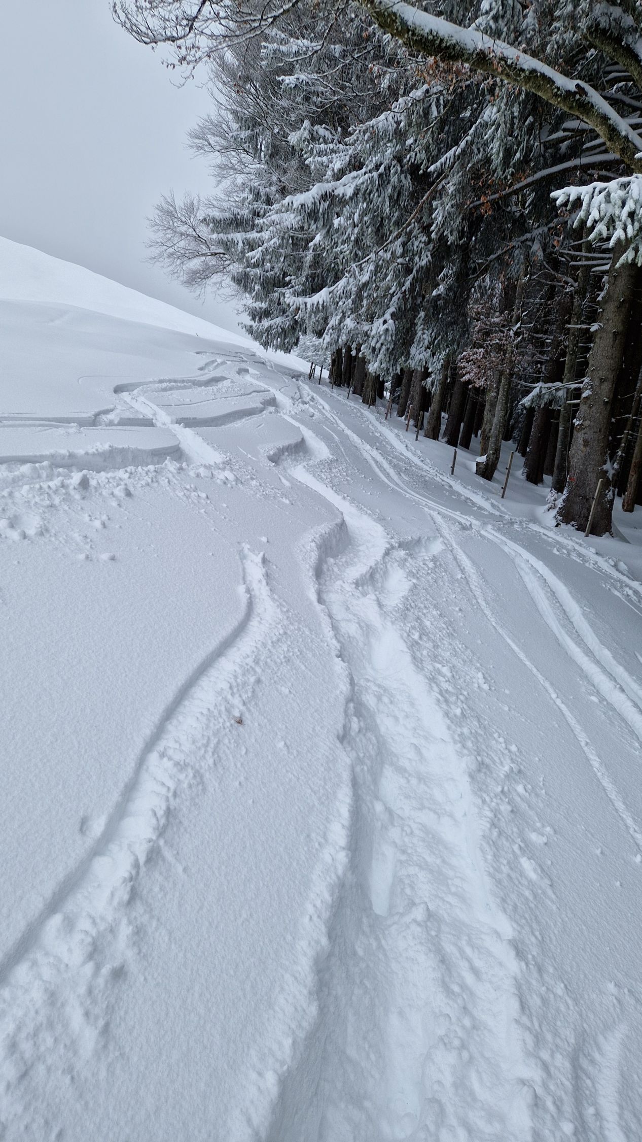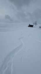 Die Abfahrt ist oben einfach zu flach für die Menge Neuschnee, dort wo es steiler ist sind dann einige schöne Schwünge drin! Alles in allem ein top Saisonauftakt vor der Haustüre.