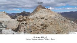 Ab ca. 2170 m in der SW-Flanke durch hohe Wacholder-, Heidelbeer- und Preiselbeergewächse meist weglos zur Rückfallkuppe I-Umet angestiegen. Von dort über Rasenschrofen und angenehm zu steigendes Geröll auf den S-Grat in der Nähe vom P. 2977 m. Der folgende erste Abschnitt des S-Grates weist über ca. 100 m unangenehm zu begehende große Felsblöcke auf.