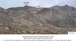Etwas unterhalb des in der LKS violett eingezeichneten Grenzsteins Nr. 14 (ca. 2730 m) erreicht man den markierten Wanderweg, der im oberen Bereich eher spärliche Markierungen aufweist.