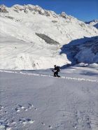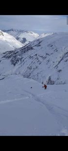 Mehrere Setzungsgeräusche, Lawinenbericht heikler emfpunden als es war (3-). Dennoch super Tiefschnee und so gut wie kein Steinkontakt! Auch weniger Leute auf der Route als sonst während der Saison.