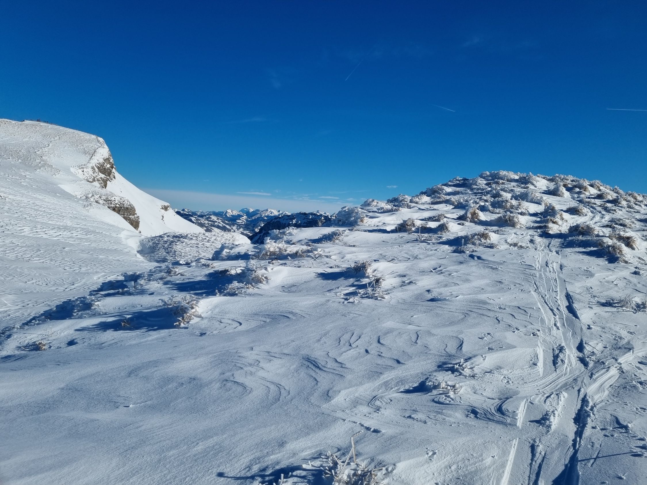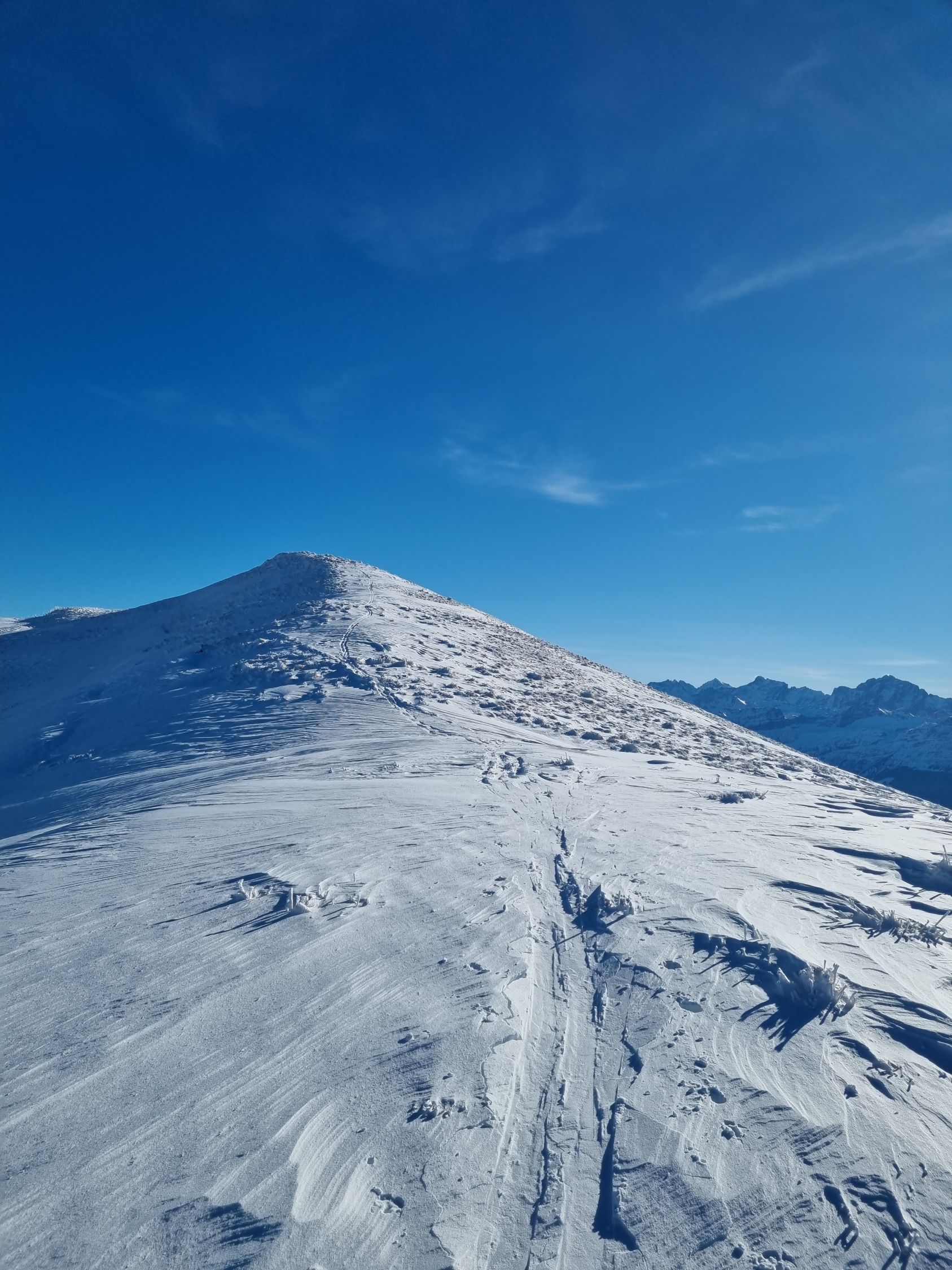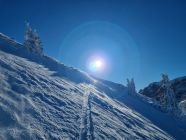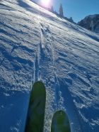 Untere Hälfte gut (Pulver, windgepresst). Obere Hänge stark abgeblasen (v.a. Chulm). Darum nur bis Gütsch aufgestiegen. Zurück mit der Seilbahn. Hatte aber einige die via Choltal abgefahren sind, sollte also möglich sein