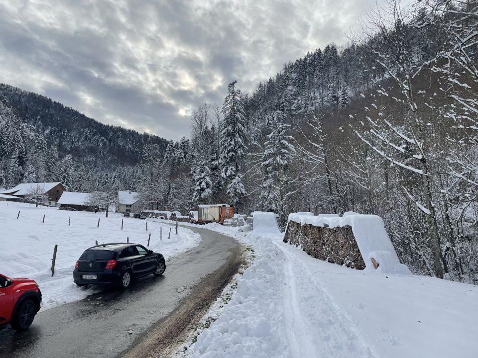 Meine Furcht, der Wärmeeinbruch komme bereits heute, war freundlicherweise unbegründet, Start im Schachen um 13.30 bei Temperatur um 0. Aufstieg durchwegs gut mit wenigen anderen Tourengängern. Die kurze Traverse im Wald unter dem Gipfel bewältigte ich aufgrund meiner nicht soo tollen Fähigkeiten mit einer Portage. Oben kalt und windig, daher keine Rast. Abfahrt im Gipfelhang leider verblasen ind verspurt, daher keine Höchstnote heute. Weiter unten aber sehr hübsche Schwünge im unverspurten Gelände. Für November ganz toll, eine Juratour in diesem Monat gibt es nicht so oft.