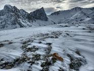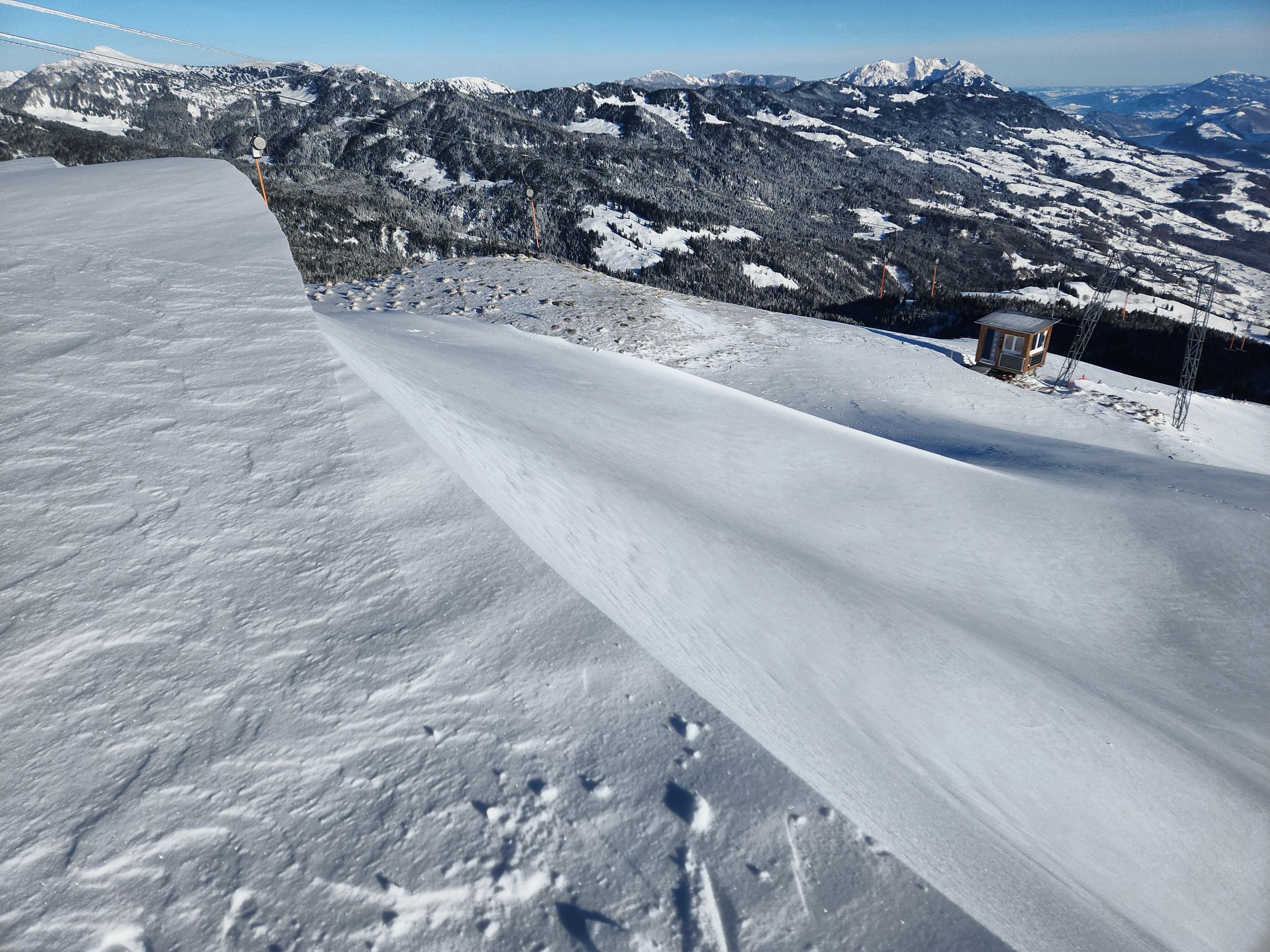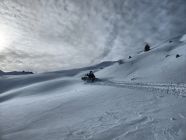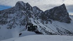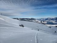 (Triebschnee-)Pulver gut in der Ostflanke. Abgeblasen überall, wo es dem Wind ausgesetzt war. Deshalb keine weitere Überschreitung sondern sechsmal die Pulverabfahrt genossen. Es war ja gespurt, und so kamen auch ein paar Höhenmeter zusammen.
