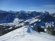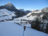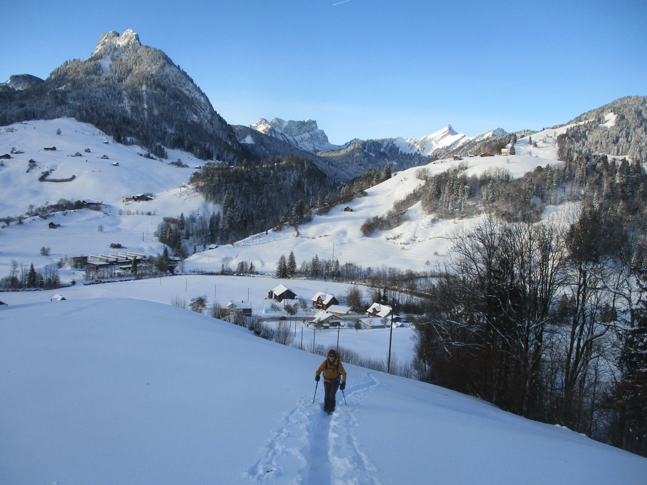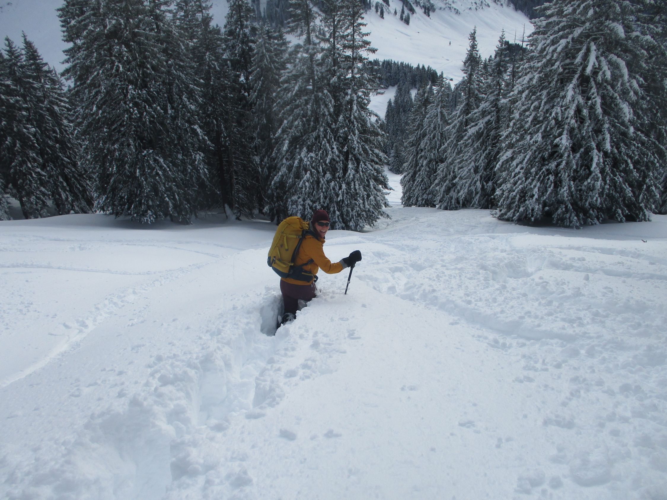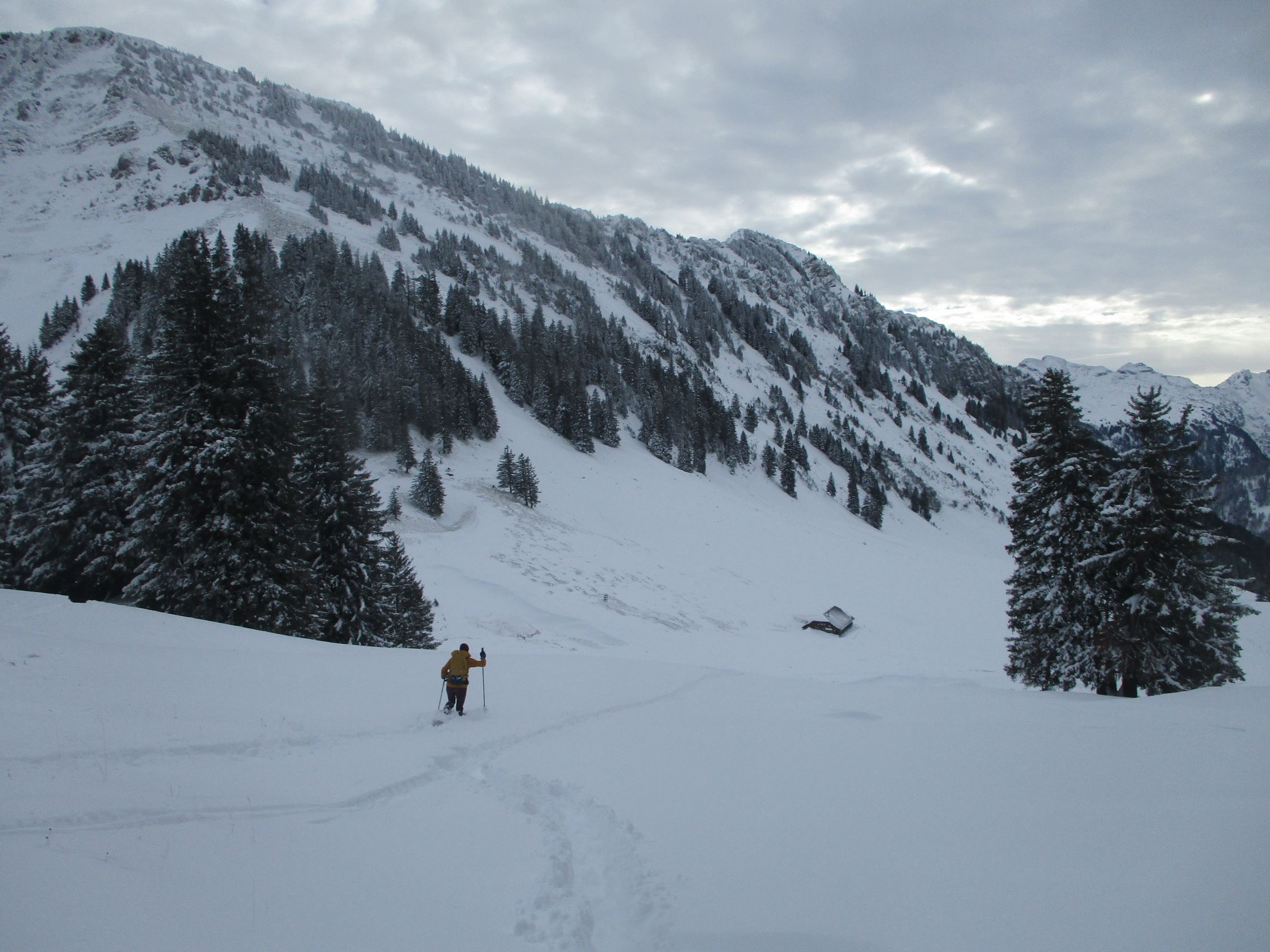 Fast schon zuviel des Guten - im Abstieg durch die Waldschneise soffen wir im bereits etwas schwer gewordenen Pulver förmlich ab, und auf dem weiteren Abstieg über die Risipassroute benutzten wir vorwiegend die Aufstiegsspur, da wir uns in den oft flachen Sektionen sonst zu Tode gewühlt hätten ;-). Dafür war´s dort wunderbar ruhig.