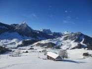 Start um 8.40 h in Breitenau bei strahlend blauem Himmel. Anfänglich noch im Schatten, dann Sonne, leichter Wind, dieser stärker ab Stockneregg und auf dem Gipfel. Allerdings weit von stürmisch entfernt, wie eigentlich vorhergesagt war. Der stürmische Westwind machte sich auf anderen Gipfeln aber sicher mehr bemerkbar, so konnten wir etwa an den Churfirsten ausgeprägte Schneefahnen beobachten.